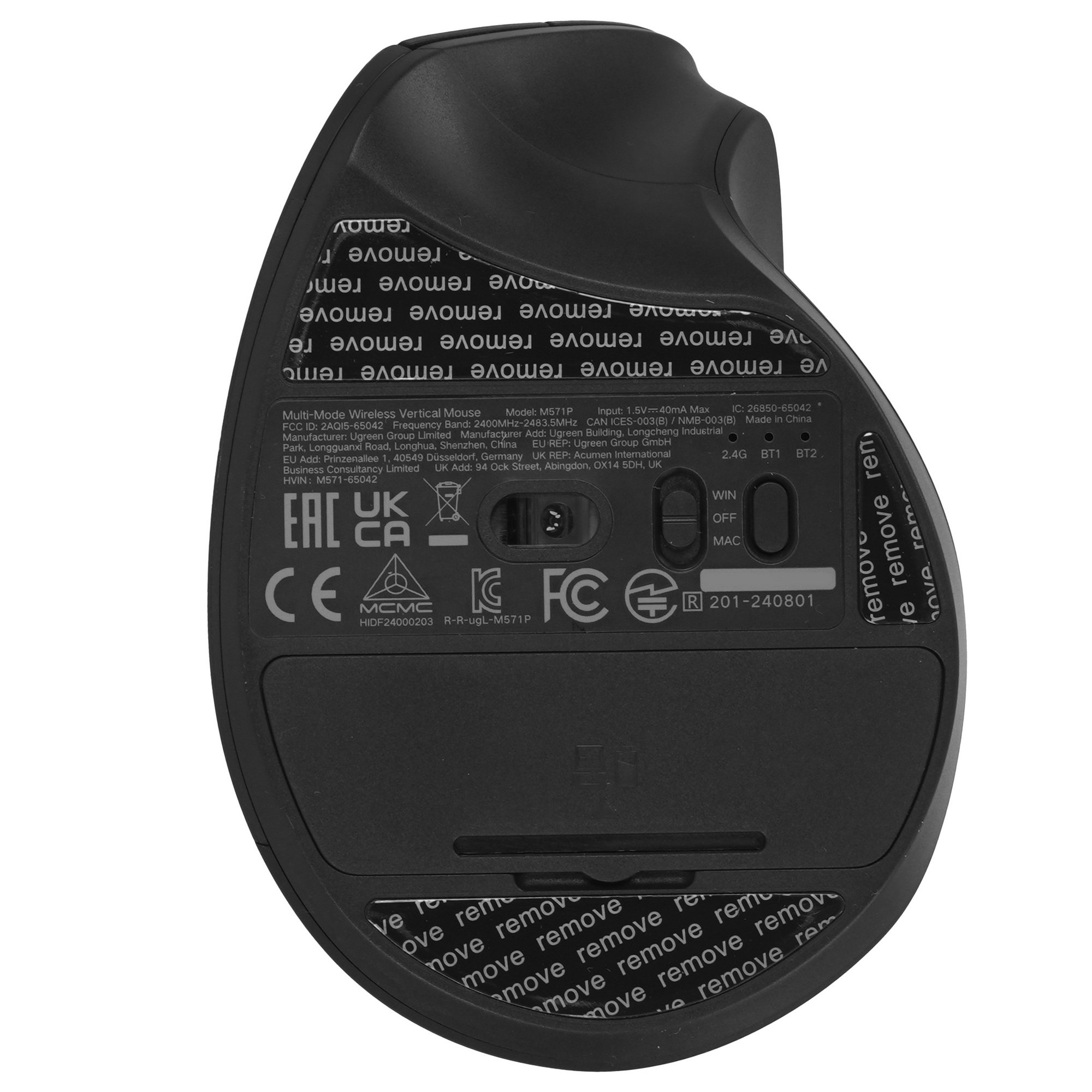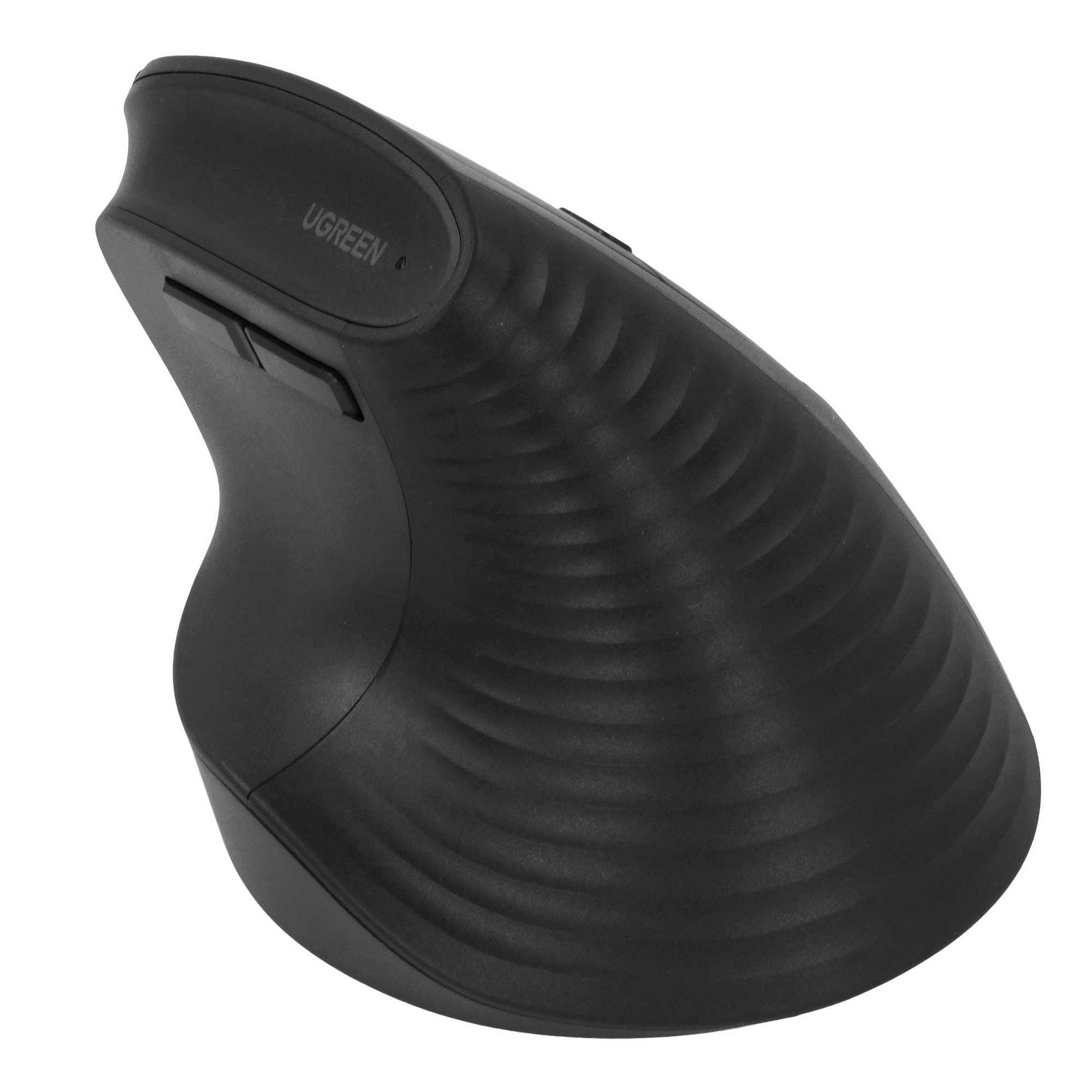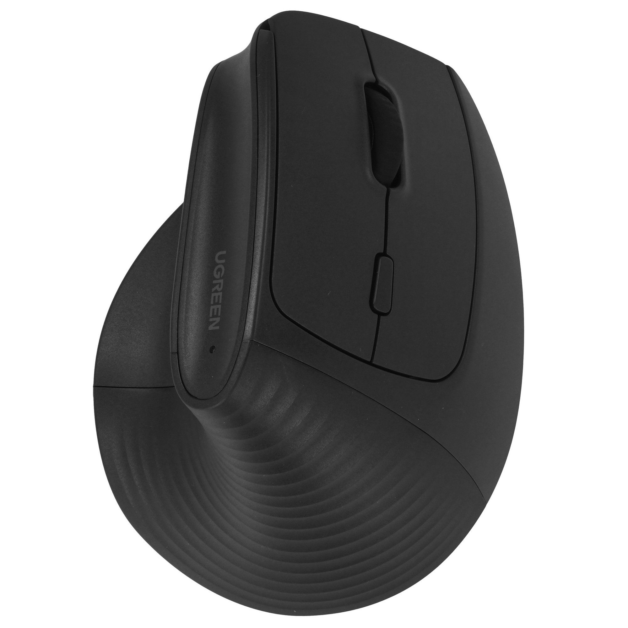 Вертикальная мышь беспроводная UGREEN M571P (65042) работает от батарейки типа АА. Форма удобна для захвата манипулятора правой ладонью. Корпус выполнен из черного пластика с матовым покрытием, которое отталкивает пыль и предупреждает проскальзывание руки.