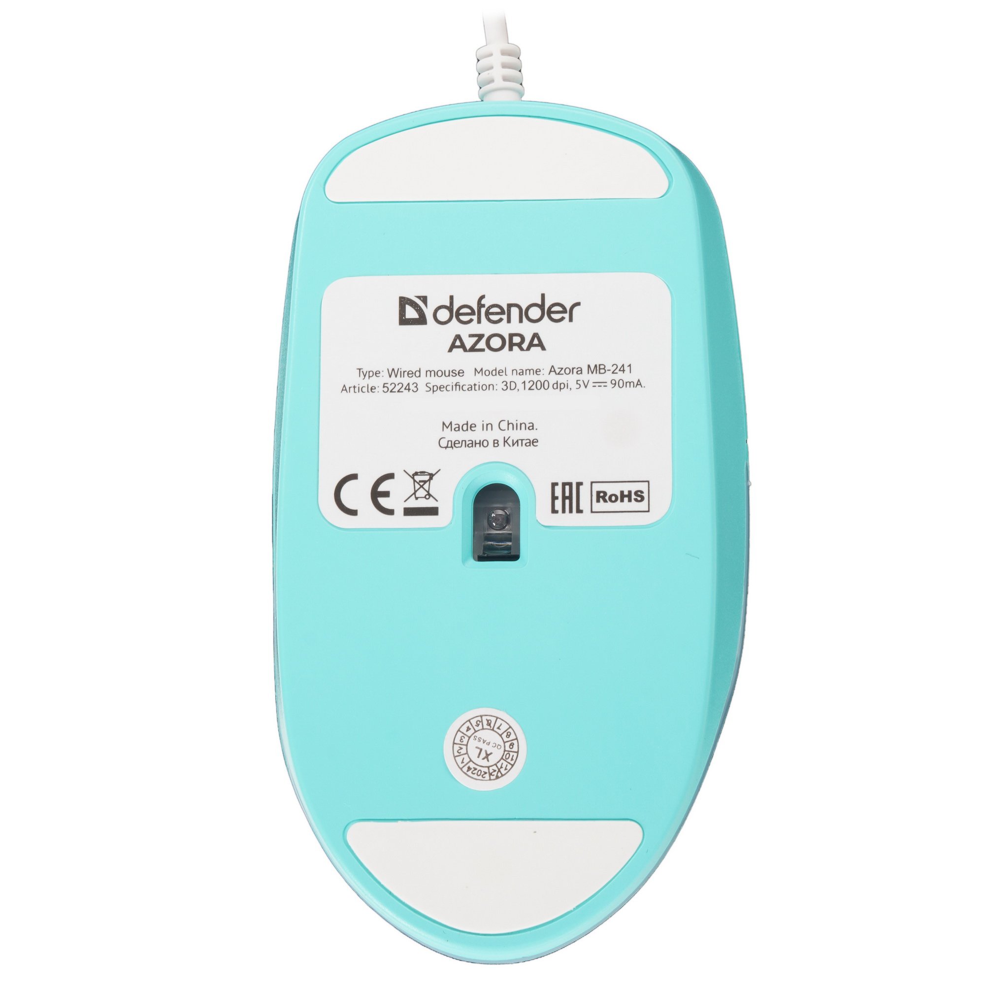 Мышь проводная Defender Azora MB-241 голубой, 1200 dpi, USB, кнопки - 3