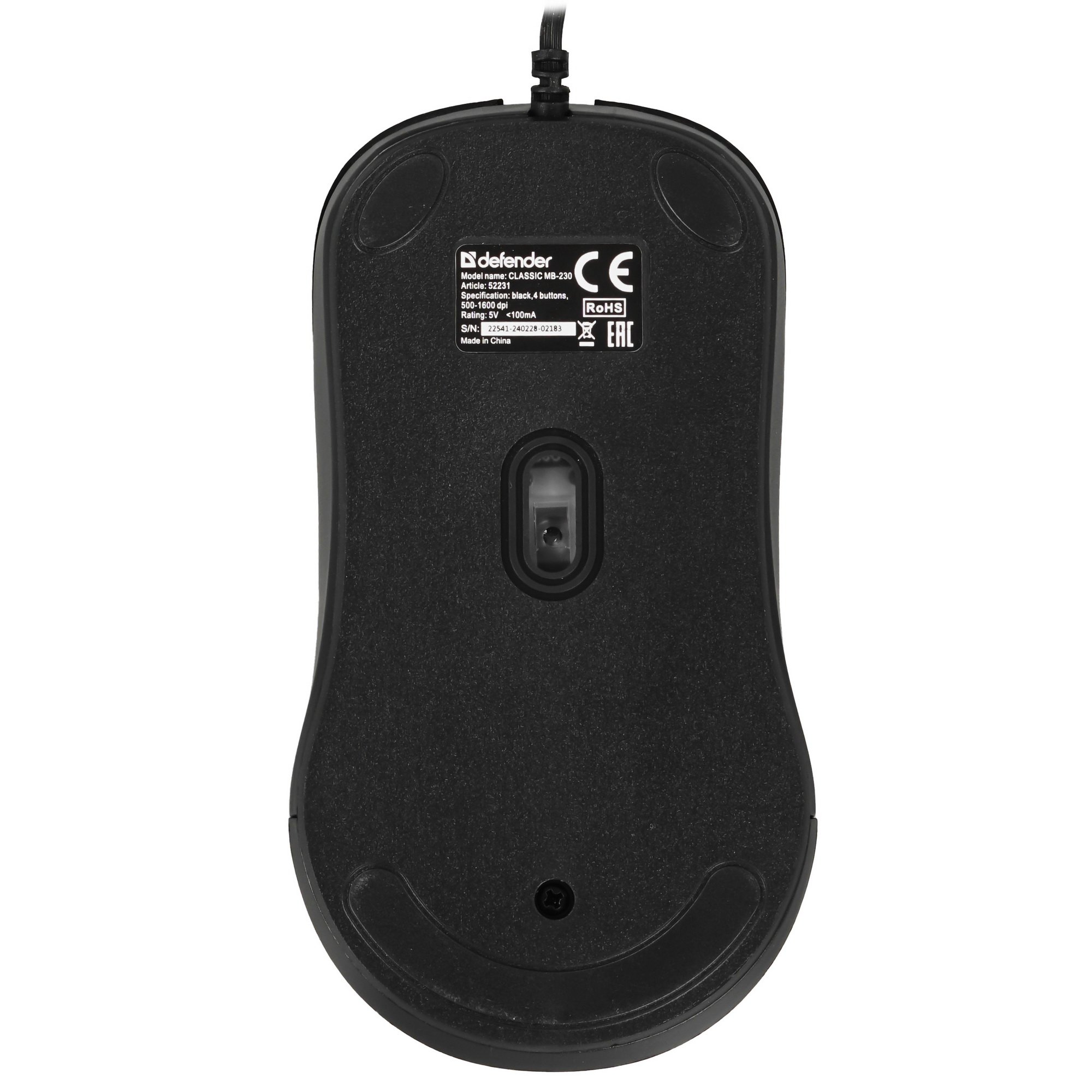 Мышь проводная Defender Classic MB-230 черный, 1600 dpi, USB, кнопки - 4