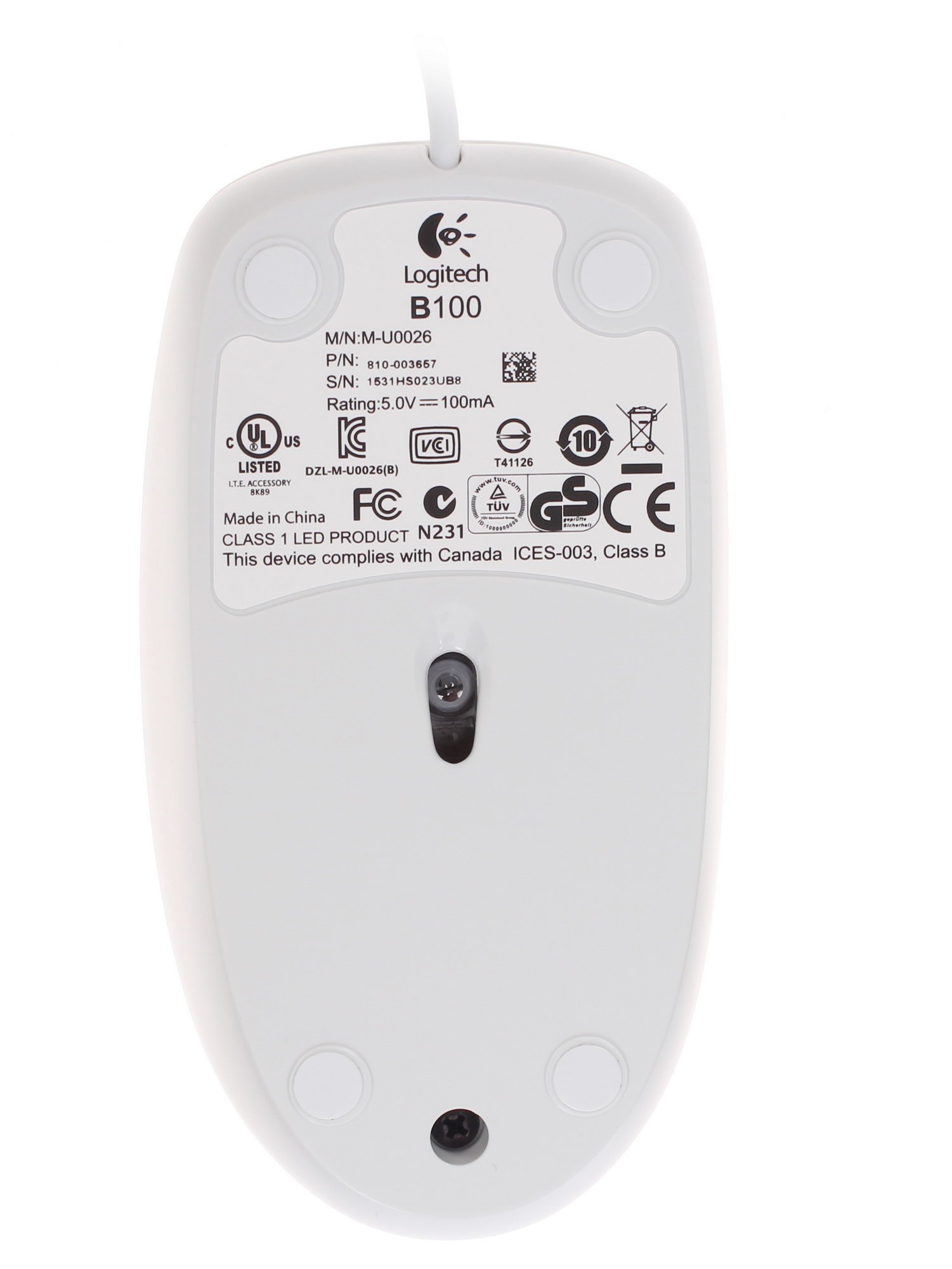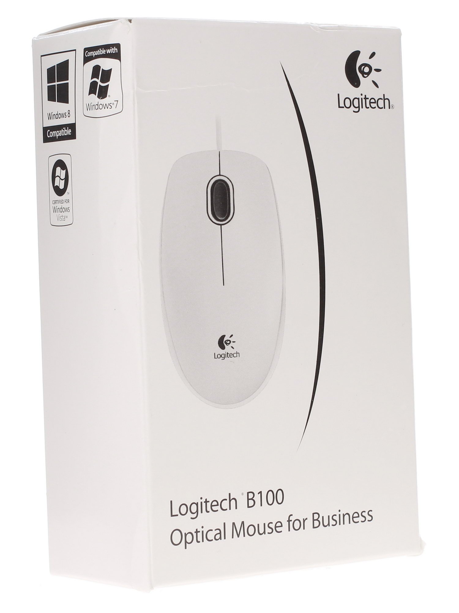 Мышь проводная Logitech B100 черный, 1000 dpi, USB, кнопки - 3