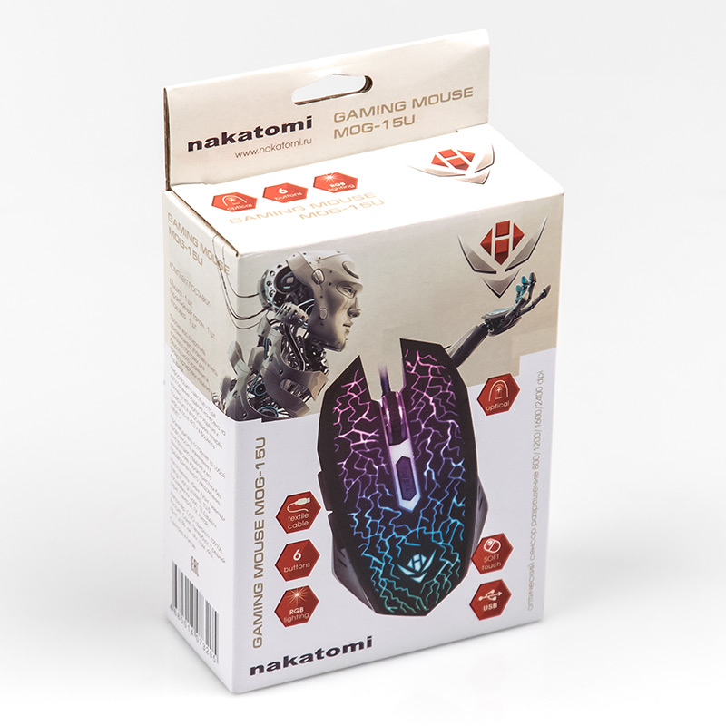 Проводная мышь Nakatomi MOG-15U предусматривает шесть кнопок на корпусе, при помощи которых можно управлять всеми функциями компьютера. Благодаря пластиковому корпусу вес устройства не превышает 84 г, при этом на нем имеется матовое покрытие, благодаря которому на поверхности практически не будут заметны отпечатки пальцев. Для быстрого подключения к компьютеру или ноутбуку без необходимости установки дополнительного софта достаточно подключить мышь к порту USB при помощи 1.5-метрового кабеля.