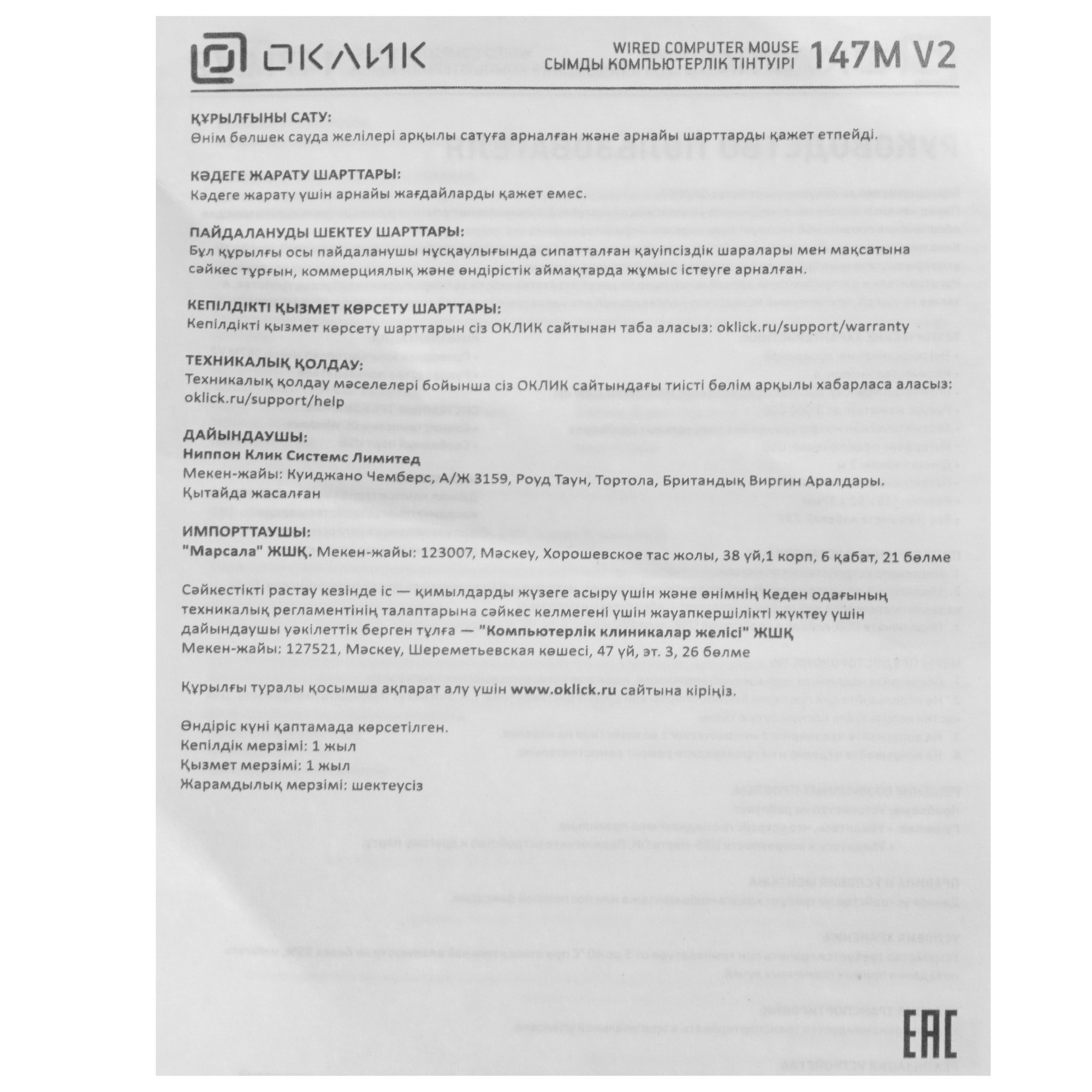 Мышь проводная Oklick 147M V2 черный, 2000 dpi, USB, кнопки - 4