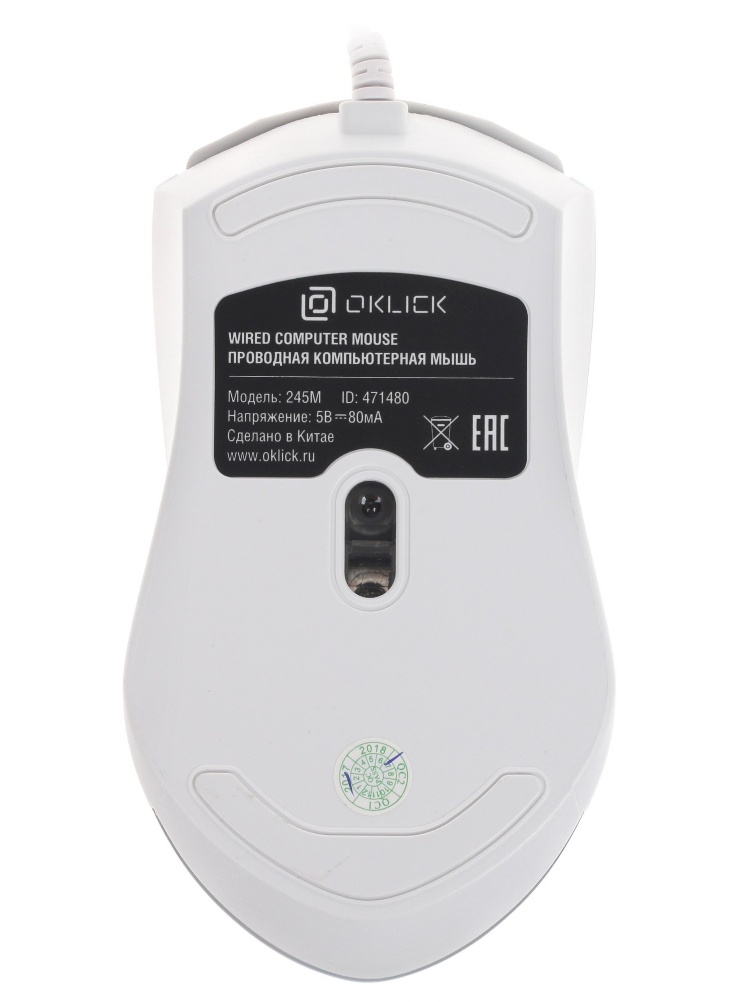 Мышь проводная Oklick 245M белый, 1000 dpi, USB, кнопки - 3