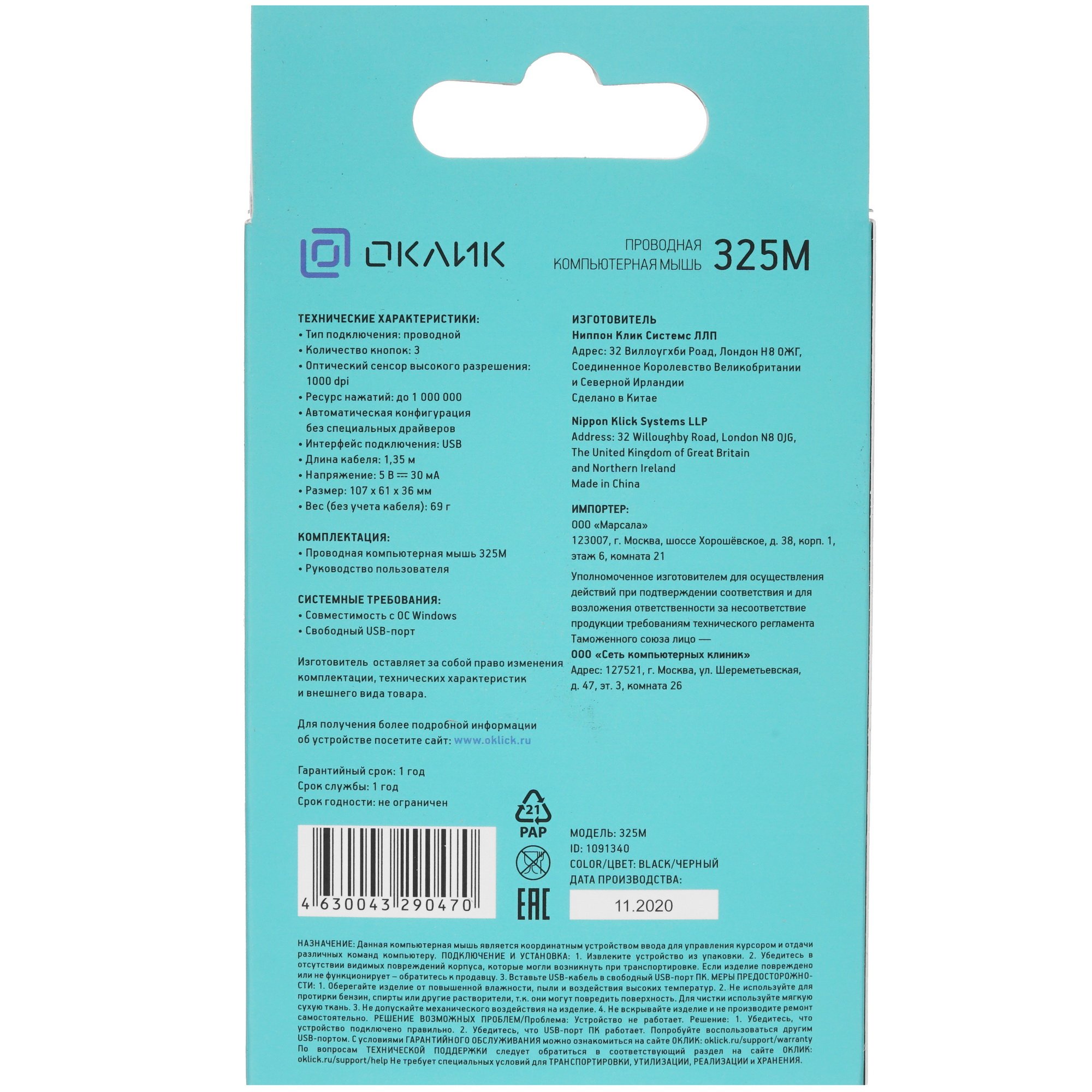 Основой проводной мыши Oklick 385M является оптический светодиодный сенсор с разрешением до 1000 dpi и высокой частотой опроса. За счет этого обеспечивается быстрое и точное расположение курсора на экране. Подключение к компьютерам производится при помощи прочного кабеля длиной 1.2 метра с коннектором USB-A на конце. Поставка устройства производится в фирменном картонном боксе.