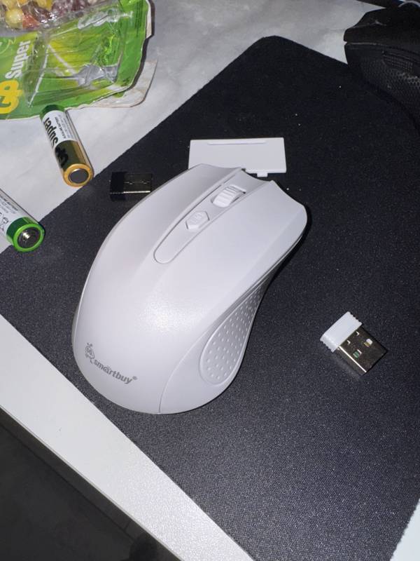 С помощью USB-ресивера, который устанавливает соединение по радиоканалу, мышка Smartbuy ONE 352 [SBM-352AG-W] подключается к системному блоку ПК или к ноутбуку. Дальность действия беспроводного соединения при этом достигает 10 м. Элементами питания для этой модели выступают батарейки типа AAA в количестве 2 шт.