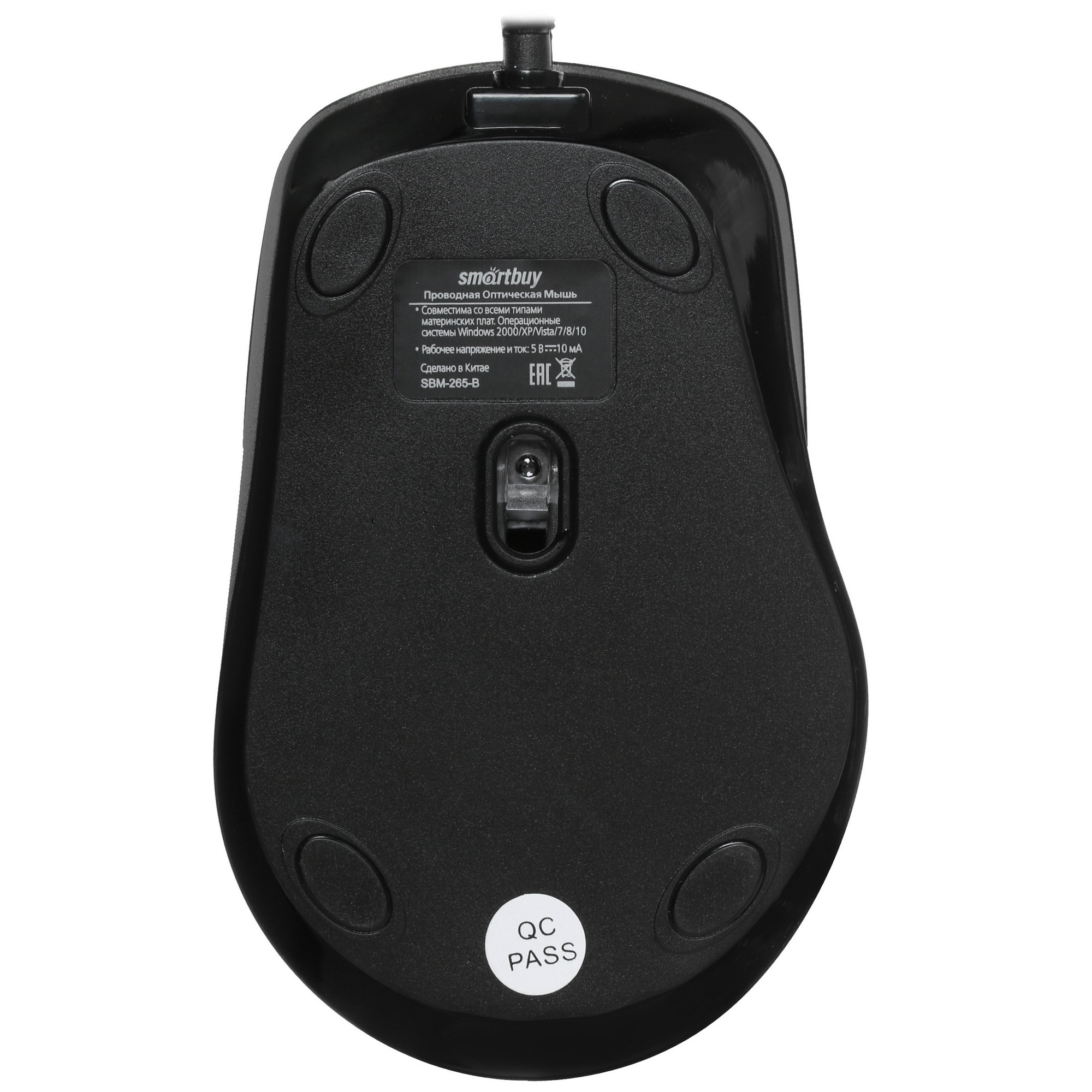 Мышь проводная Smartbuy ONE SBM-265-B имеет две основные кнопки, клавишу для смены разрешения и колесо прокрутки. Модель напряжением 5 В имеет разрешение оптического сенсора от 800 до 2400 dpi, с помощью чего можно подобрать оптимальную скорость позиционирования курсора.