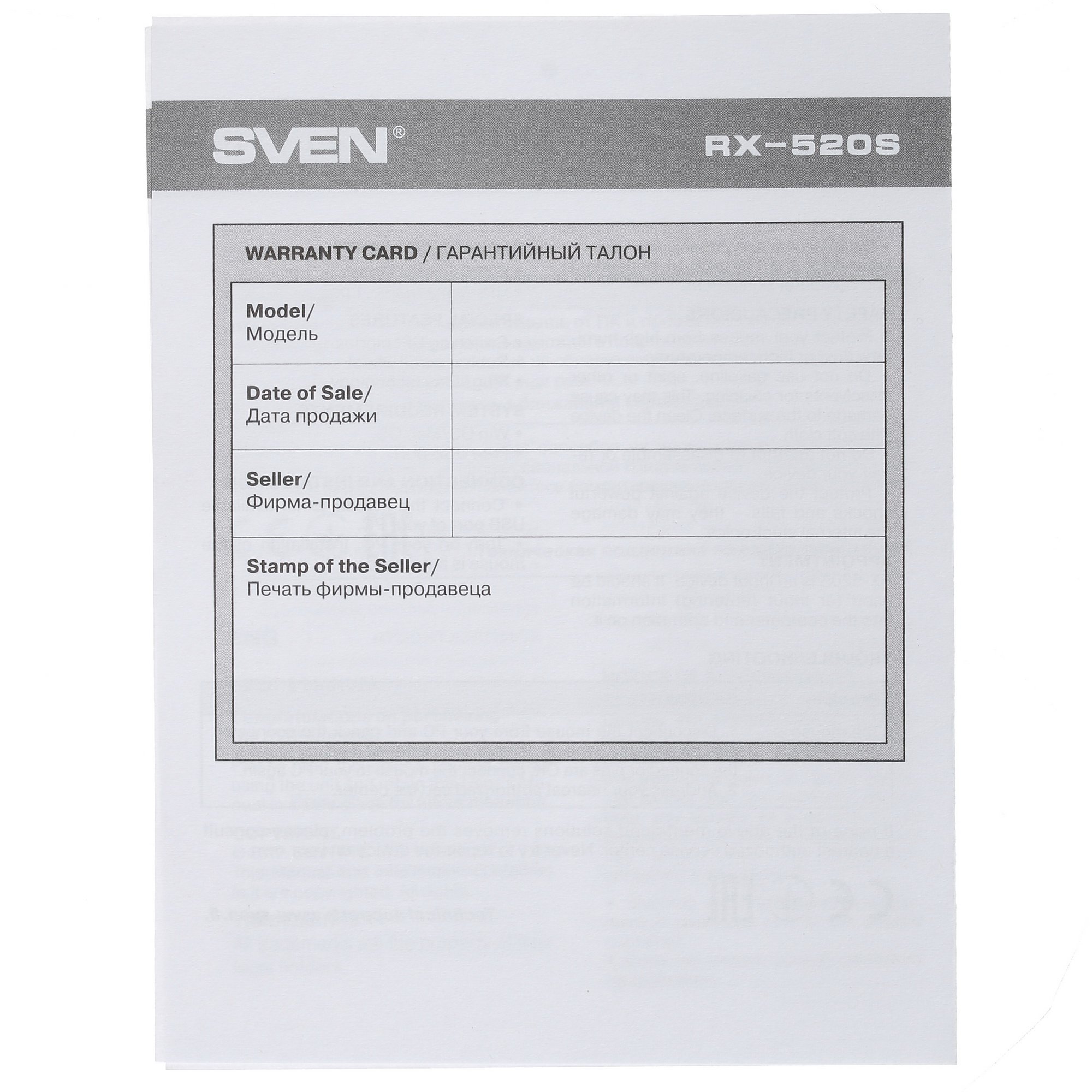 Гарантия и документы
