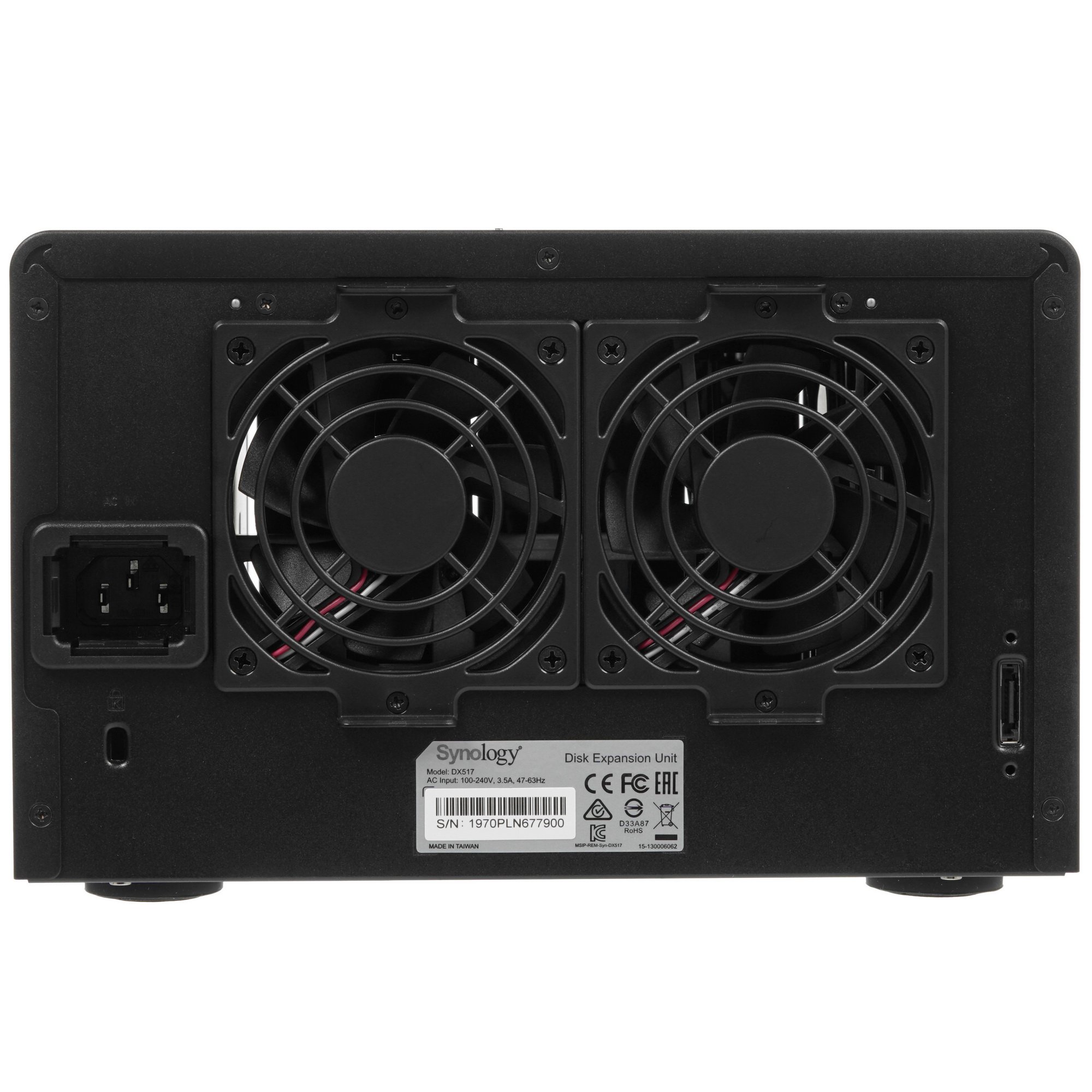 Модуль расширения для сетевого хранилища Synology DX517 подходит для размещения колоссального объема информации – до 50 ТБ. Для этого он имеет в своей конструкции отсеки 5 накопителей типа SATA II / III или SSD по 10 ТБ каждый. Еще один плюс этого устройства – возможность горячей замены HDD. Чтобы обеспечить ему долгую работоспособность, производитель оснастил его встроенной системой охлаждения. Модуль расширения для сетевого хранилища Synology DX517 занимает немного места на рабочем столе, поэтому его можно сделать мини-сервером для домашнего или рабочего офиса.