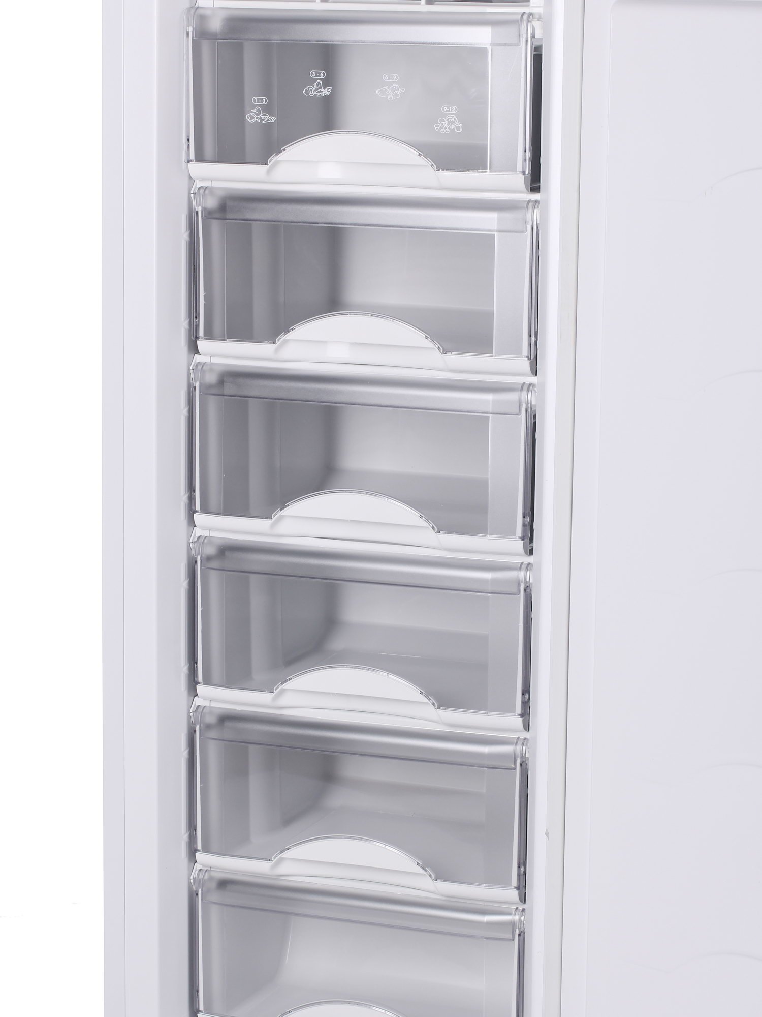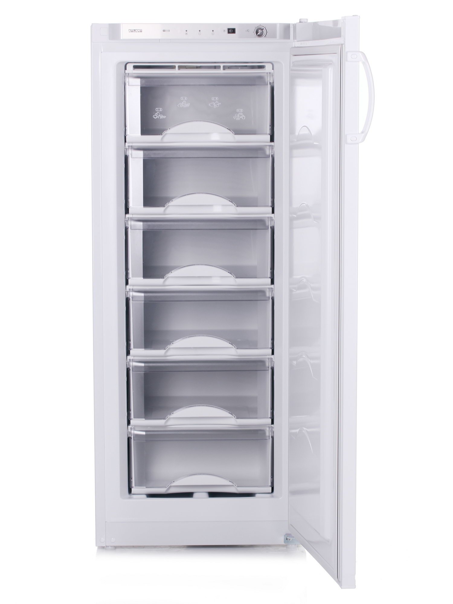 Для поддержания морозильника в рабочем состоянии и продления срока его эксплуатации необходима регулярная ручная разморозка. Конструкция морозильного шкафа предусматривает перевешиваемую дверцу для эффективной организации кухонного пространства.