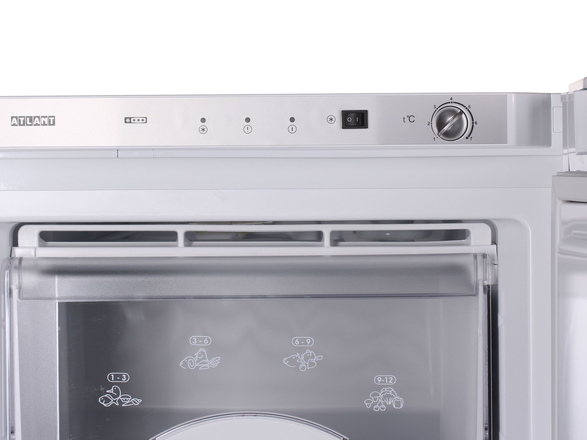 Управление настройками температуры производится при помощи механического ролика. Функция суперзаморозки запускается специальным выключателем. Об установленных режимах сигнализируют световые индикаторы на панели управления. Морозильный шкаф ATLANT M 7203-100 работает на изобутане, который обладает высоким холодильным коэффициентом, что снижает энергопотребление. Этот показатель не превышает 239 кВт·ч/год.