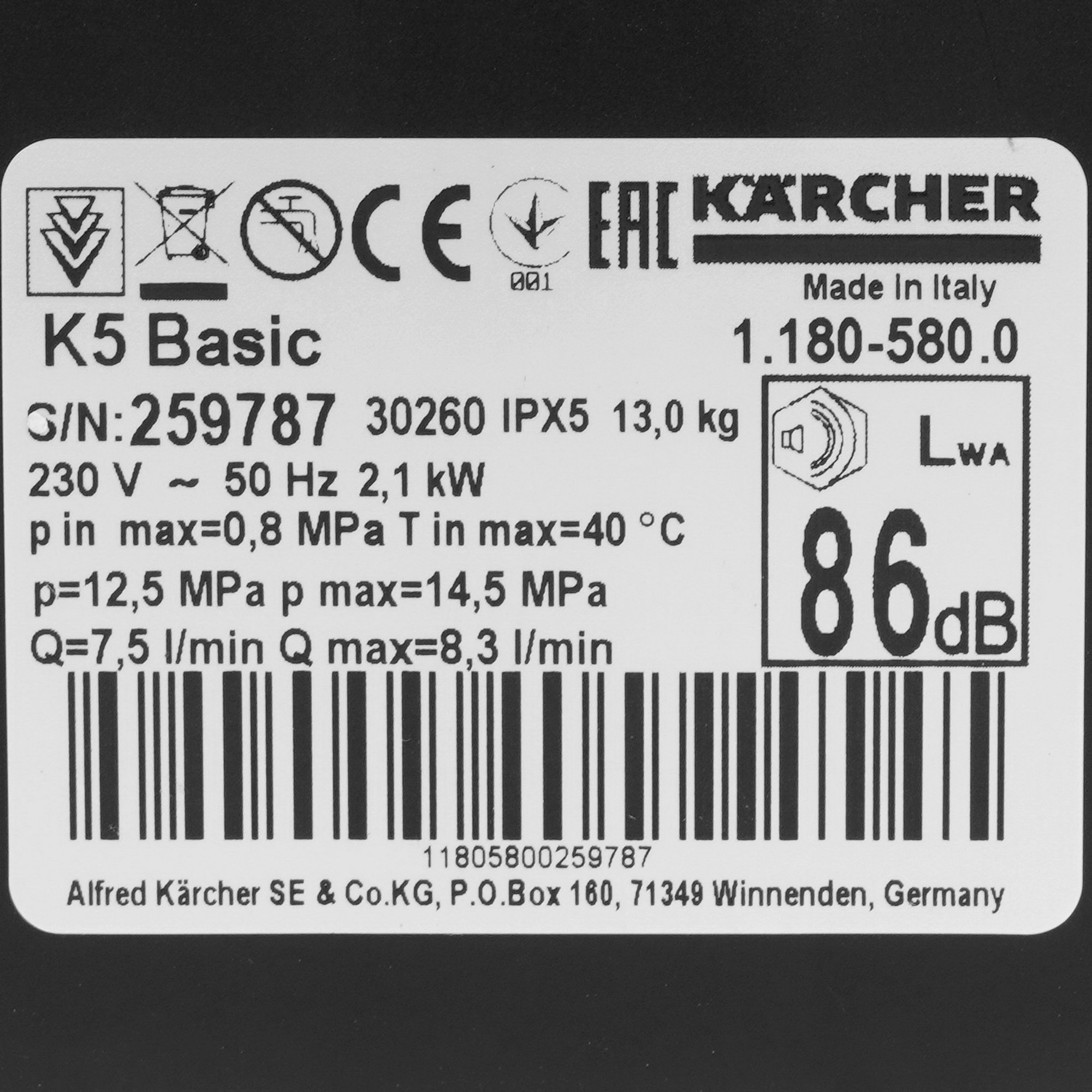 Минимойка Karcher K 5 basic 2100Вт