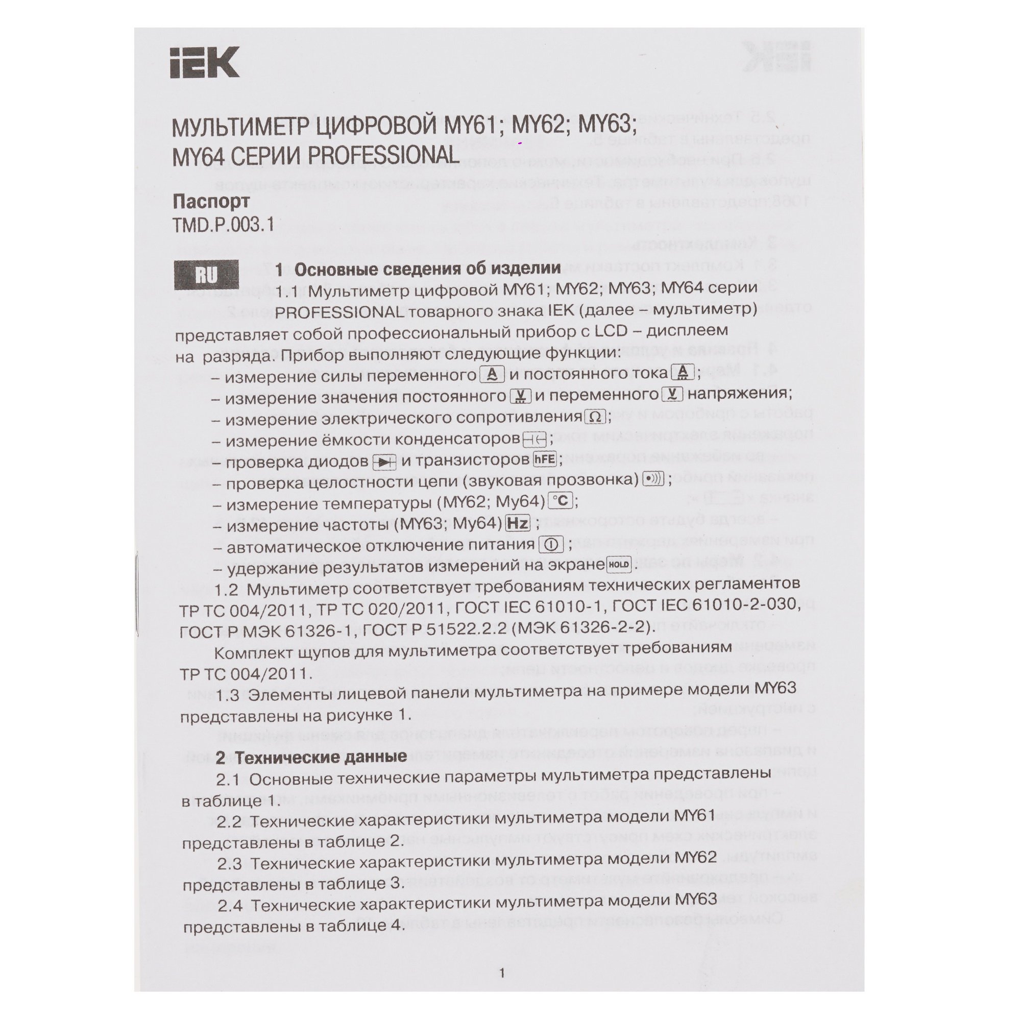 Мультиметр цифровой Professional MY62I ИЭК TMD-5S-062