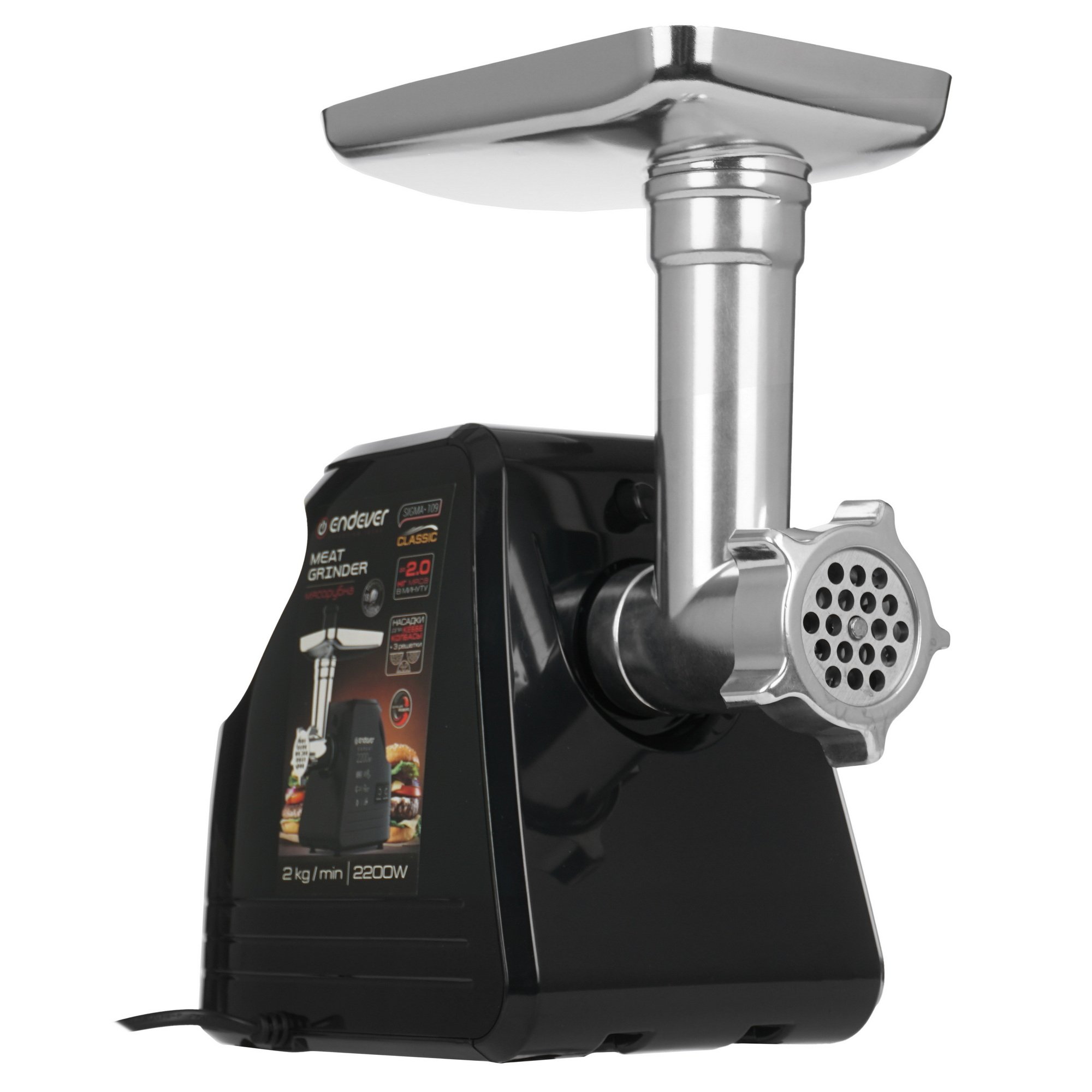 Мясорубка Endever Sigma-109 с мощностью 2200 Вт – это отличный выбор для любителей приготовления мясных блюд. С этой мясорубкой вы можете легко измельчить до 2 кг мяса за минуту, что позволит вам быстро приготовить любимые блюда для всей семьи без лишних усилий. Металлический загрузочный лоток обеспечивает удобную загрузку продуктов в мясорубку, а три решетки в комплекте 3, 5 и 7 мм дают вам возможность выбрать нужную текстуру измельченного мяса.
