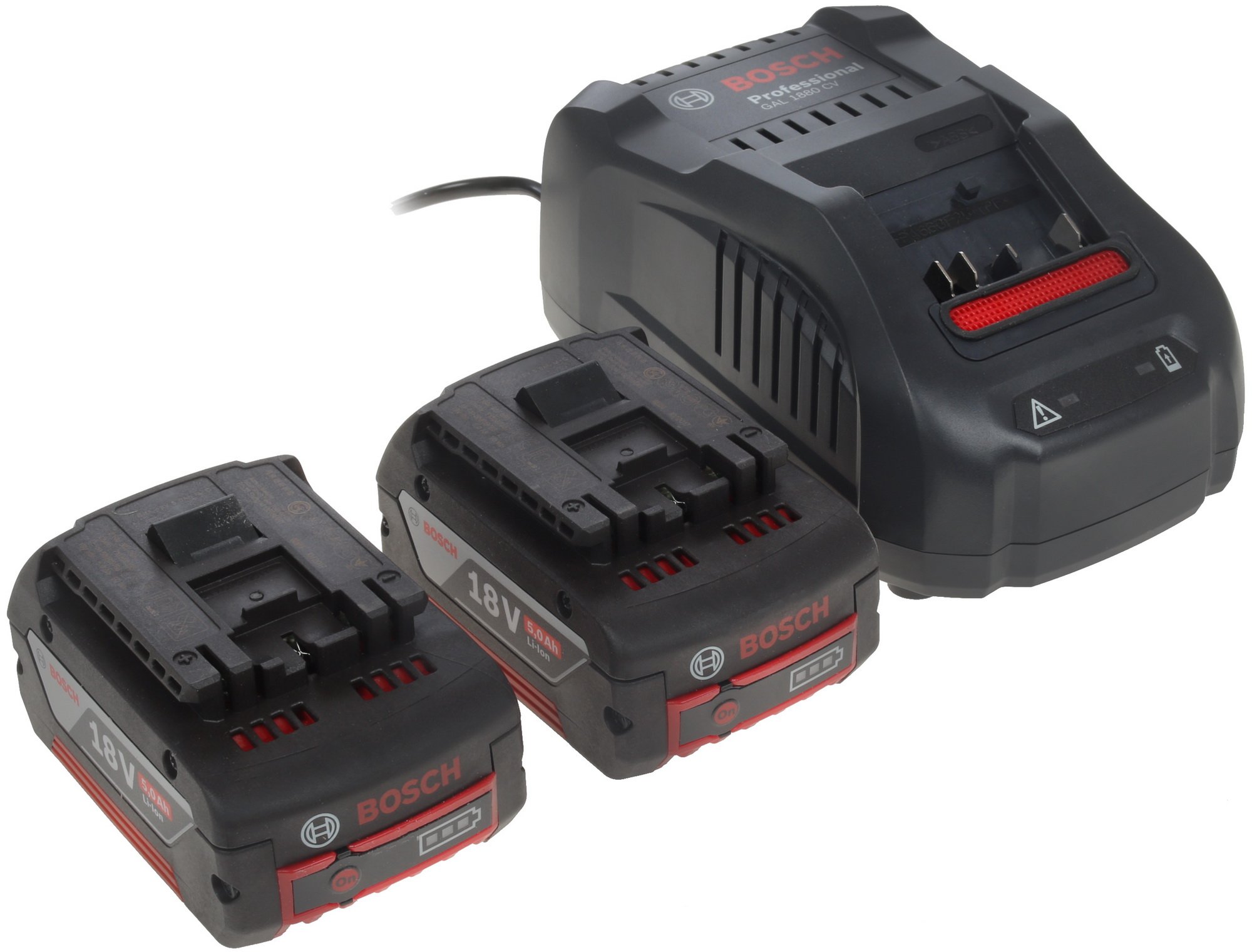 Для удобства в Bosch 2 GBA 18В 5.0Ач + GAL 1880 CV предусмотрена шкала зарядки, чтобы вы всегда знали, насколько заряжен аккумулятор. А благодаря применению технологии Cool Pack данный аккумулятор изготовлен таким образом, чтобы минимизировать его перегрев и сохранить тем самым максимум заряда для работы. Для того чтобы обеспечить акумулятор энергией его на 80%, вам потребуется всего 35 минут. В комплекте идут 2 аккумулятора вместе с зарядным устройством.