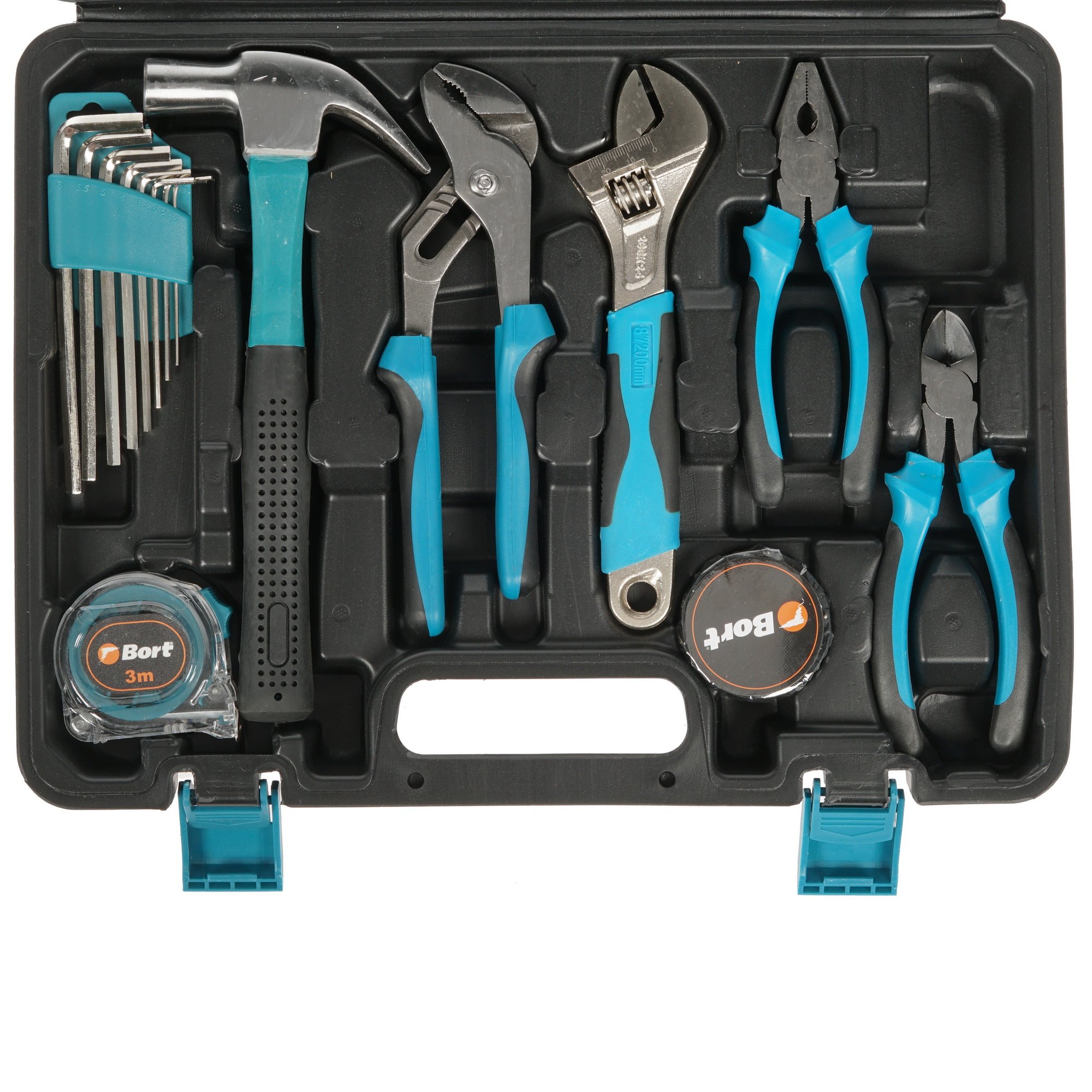 Набор инструментов Bort BTK-100 – это мечта каждого мужчины. Он содержит 100 предметов, среди которых отвертки, губцевый инструмент, биты, торцевые головки, молоток, гаечные ключи различных типоразмеров, ножовка по металлу, рулетка, набор крепежа и другие изделия, с которыми домашний мастер сможет выполнять самые разные работы. Такое комплект будет полезен при ремонте электрики, в сантехнических работах, сборке деревянных и других конструкций.