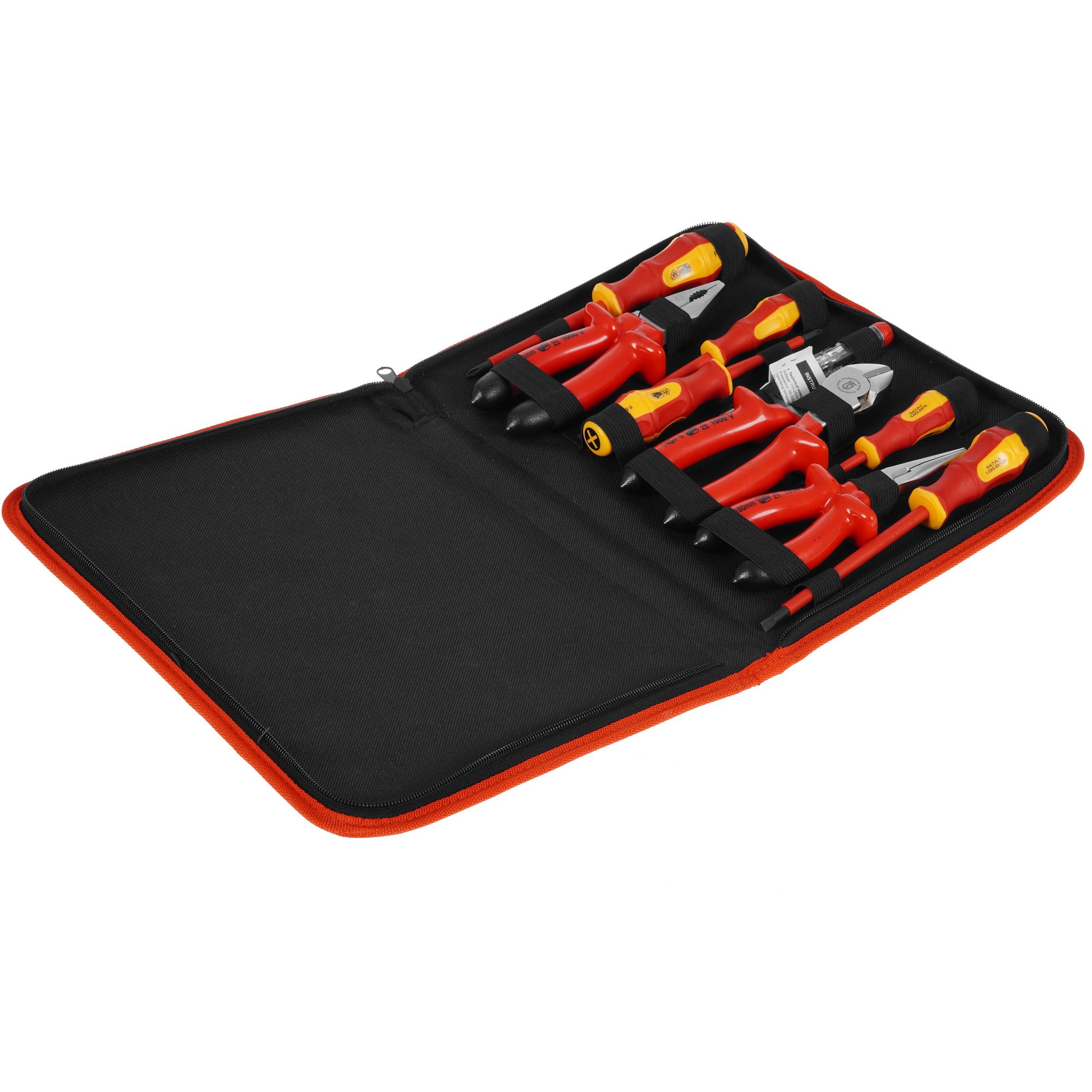Набор инструментов КВТ Эксперт НИИ-19 предназначен для профессиональной безопасной работы с крепежными элементами, находящимися под напряжением до 1000 В. Данный набор состоит из 9 инструментов, среди которых отмечаются 5 отверток, пассатижи, длинногубцы, бокорезы, тестер напряжения. Рабочая часть инструментов выполнена из стали высокой прочности. Закаленные кромки повышают устойчивость к повреждениям и деформации. Мягкий практичный чехол на застежке-молнии обеспечивает упорядоченное хранение всех инструментов КВТ Эксперт НИИ-19.