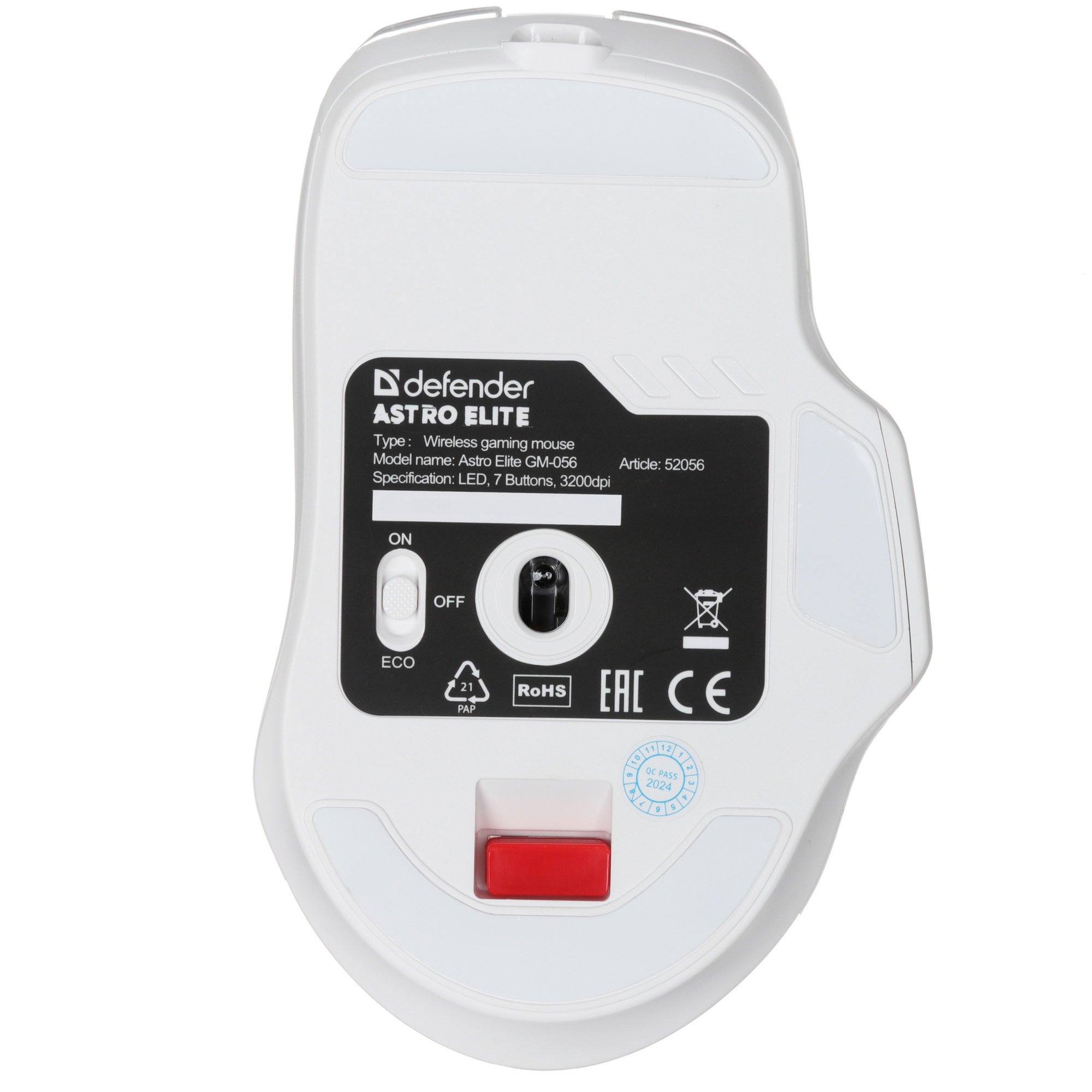 Мышь беспроводная Defender Astro Elite GM-056 в прозрачном корпусе предусматривает разноцветную подсветку компонентов, за счет которых она будет выделяться на вашем рабочем столе. Оснащение модели представлено 7 кнопками, 5 из которых можно запрограммировать на выполнение определенных команд. В устройстве используется оптический светодиодный датчик Instant S201C с частотой опроса 125 Гц и изменяемой частотой опроса в диапазоне 1200-3200 dpi для выбора подходящей скорости перемещения курсора. Для защиты от срыва в сторону при резких движениях манипулятора его максимальное ускорение достигает 10 G.