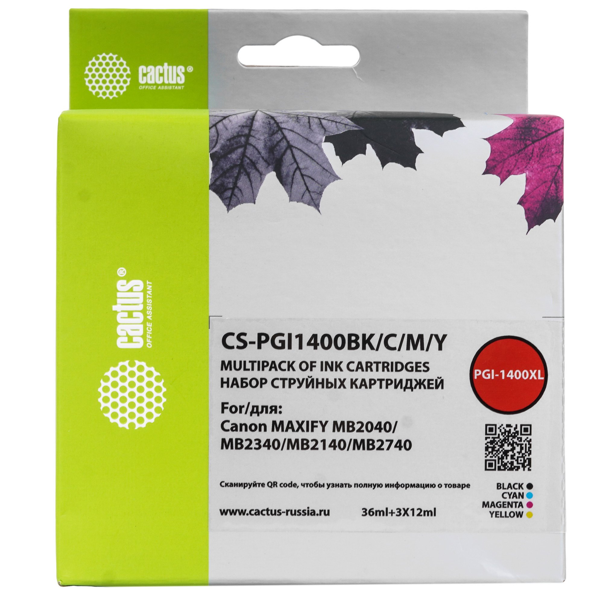 Картридж струйный Cactus CS-PGI1400BK/C/M/Y 4 цв. набор (72 мл) для Canon MB2050/MB2350/MB2040/MB2340