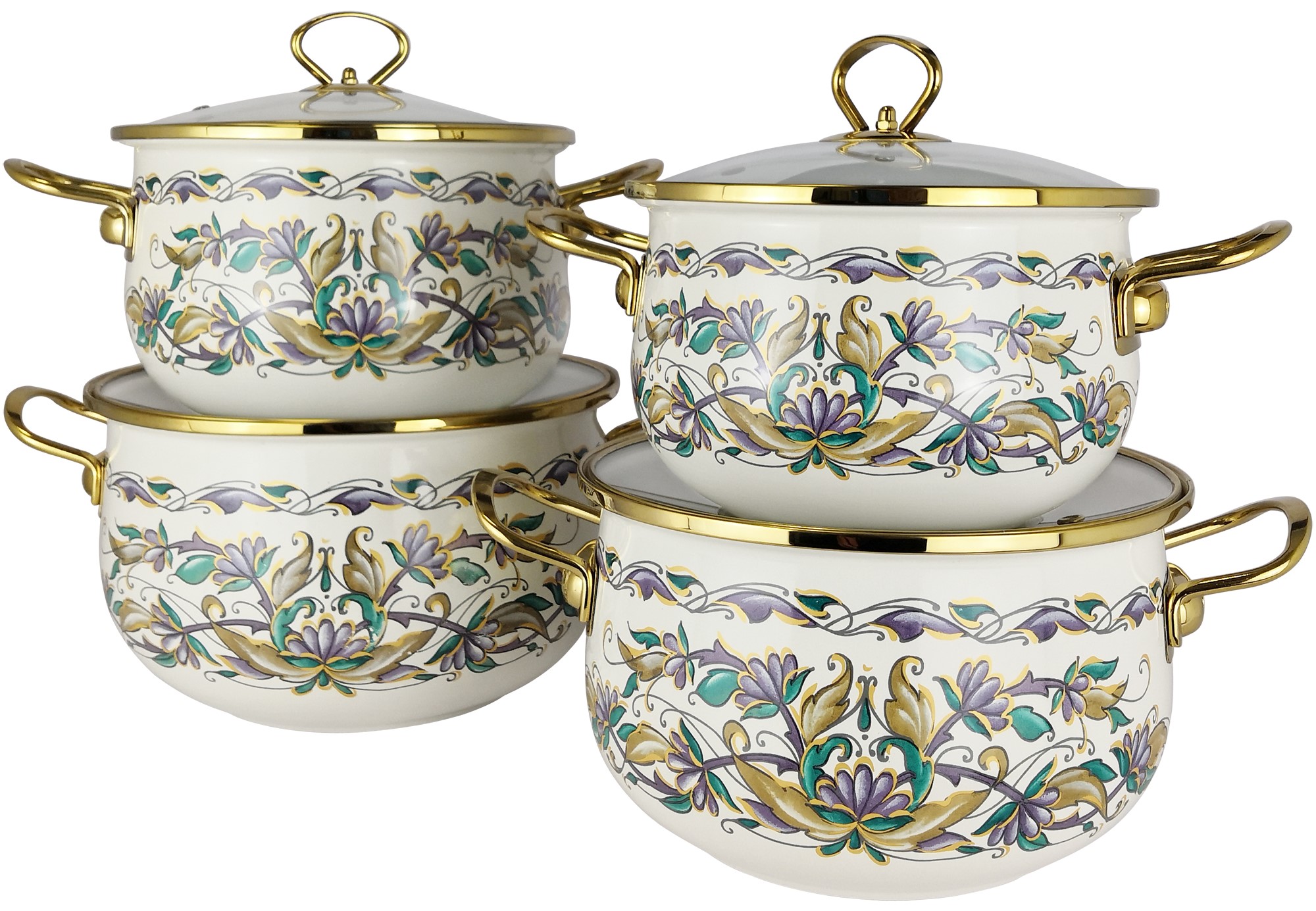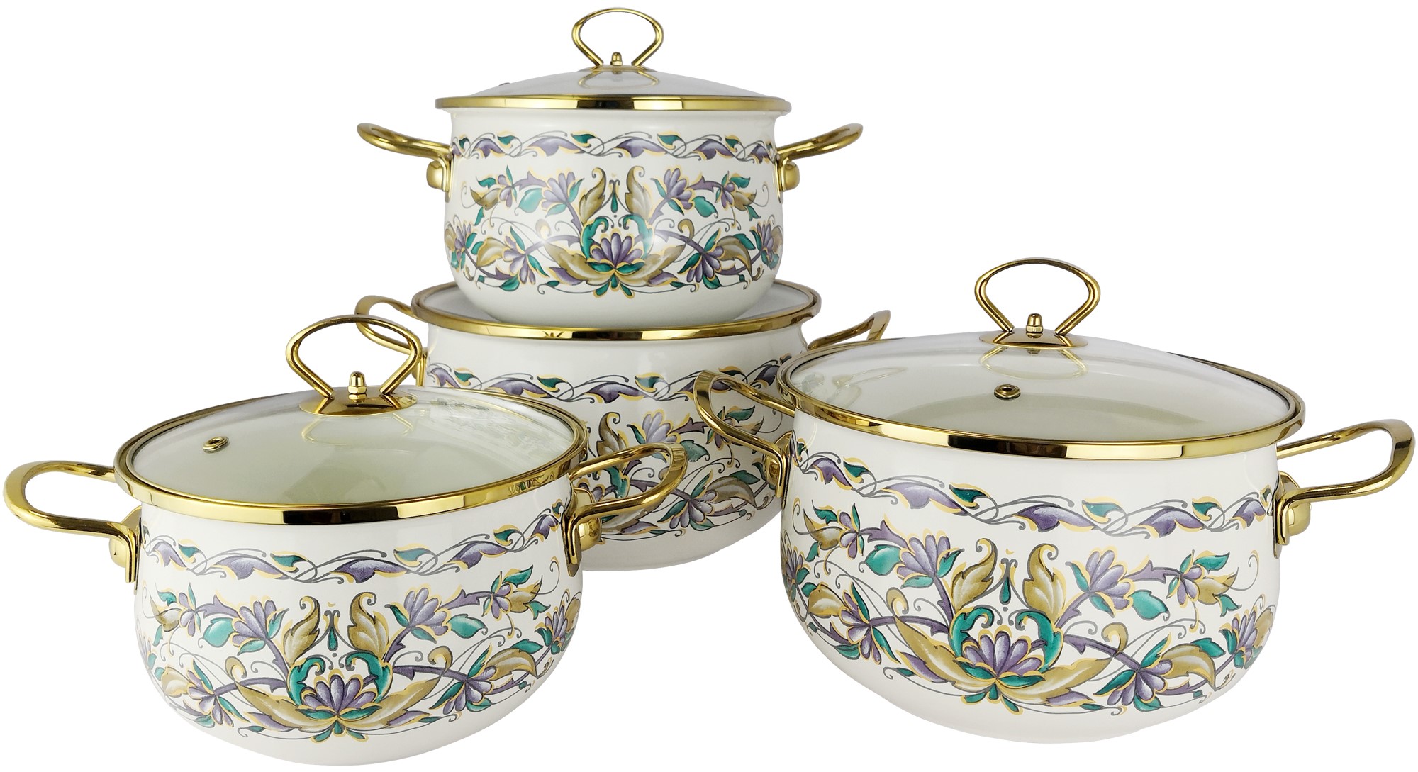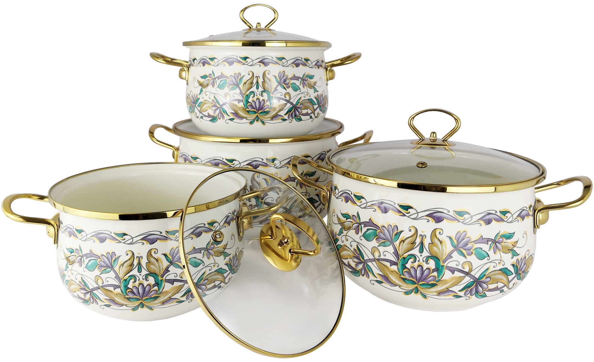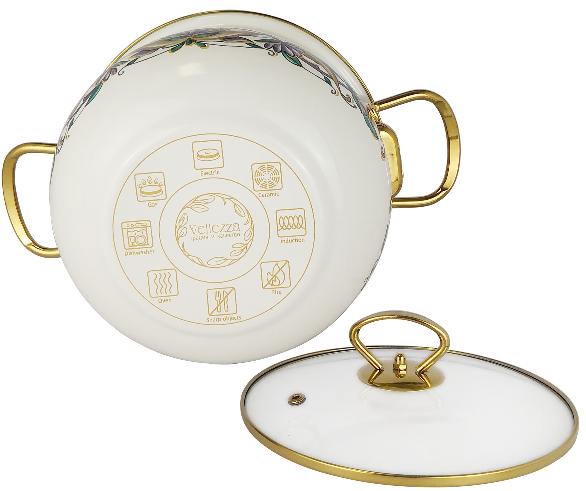 Набор кастрюль VELLEZZA VZ-1006 представлен в необычном дизайне с цветным узором на бежевом фоне. Посуда из эмалированной стали не вступает в реакцию с пищевыми продуктами, не боится появления коррозии и царапин. Поэтому кастрюли можно использовать для приготовления блюд, засолки, маринования и хранения продуктов.