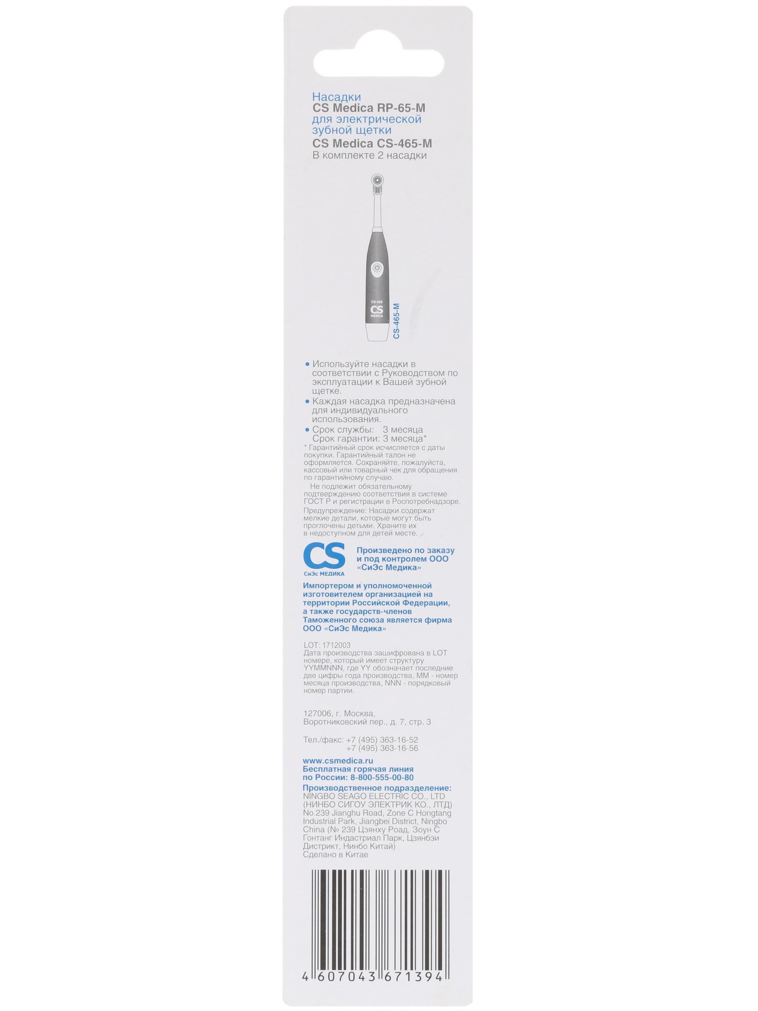 Сменная насадка CS Medica RP-65-M оптимально подойдет для электрической зубной щетки модели CS Medica CS-465-M. Замена насадки позволяет продлить срок службы устройства и сохранить качество чистки на высоком уровне. Аксессуар изготовлен из качественных материалов, поэтому прослужит долго. Насадки рекомендуется менять раз в 3 месяца.