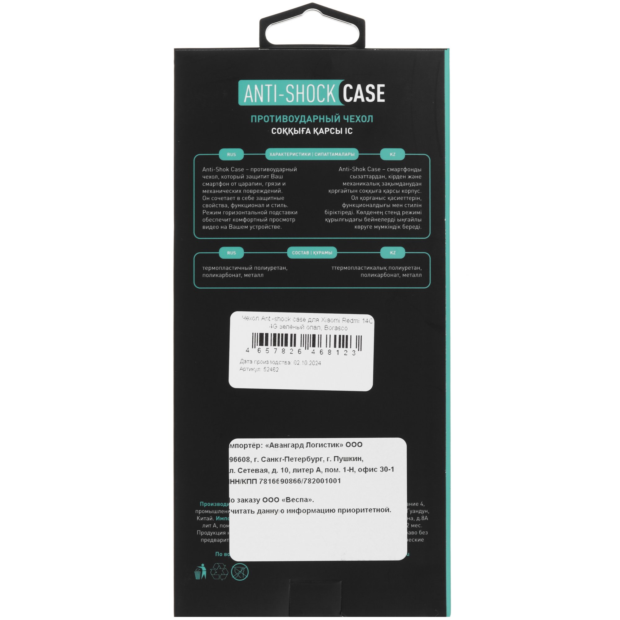 Накладка BoraSCO Anti-Shok Case для POCO C75/Xiaomi Redmi 14C/A3 Pro/A4 с диагональю экрана 6.88 дюйма защищает корпус смартфона от механических повреждений, загрязнений, брызг воды. Аксессуар изготовлен из поликарбоната и термопластичного полиуретана в зеленом цвете. Усиленная конструкция с амортизирующими углами сохраняет целостность устройства при падениях и ударах. В накладке BoraSCO Anti-Shok Case есть необходимые вырезы для свободного доступа к функциональным разъемам, камере и кнопкам. На задней панели предусмотрено выдвижное металлическое кольцо с функцией подставки.