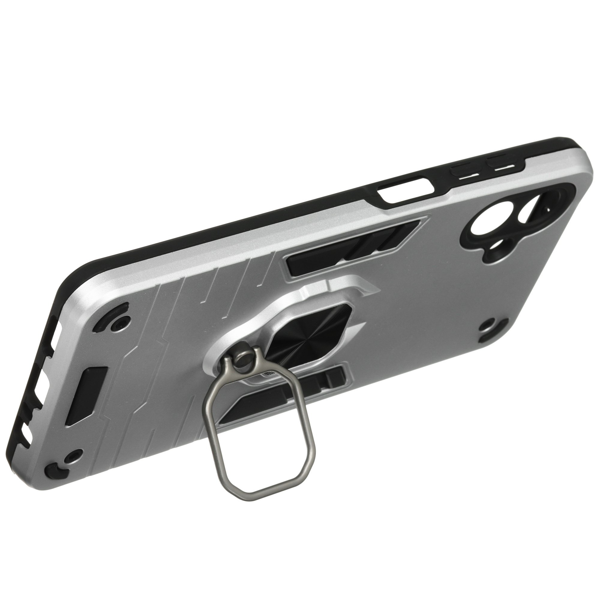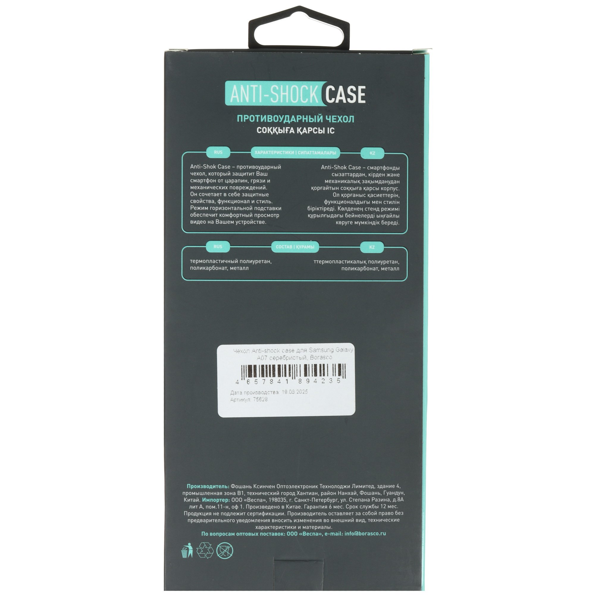 Накладка BoraSCO Anti-Shok Case для Samsung Galaxy A07 с диагональю экрана 6.7 дюйма защищает корпус смартфона от механических повреждений, загрязнений, брызг воды. Аксессуар изготовлен из поликарбоната и термопластичного полиуретана в серебристом цвете. Усиленная конструкция с амортизирующими углами сохраняет целостность устройства при падениях и ударах. В накладке BoraSCO Anti-Shok Case есть необходимые вырезы для свободного доступа к функциональным разъемам, камере и кнопкам. На задней панели предусмотрено выдвижное металлическое кольцо с функцией подставки.