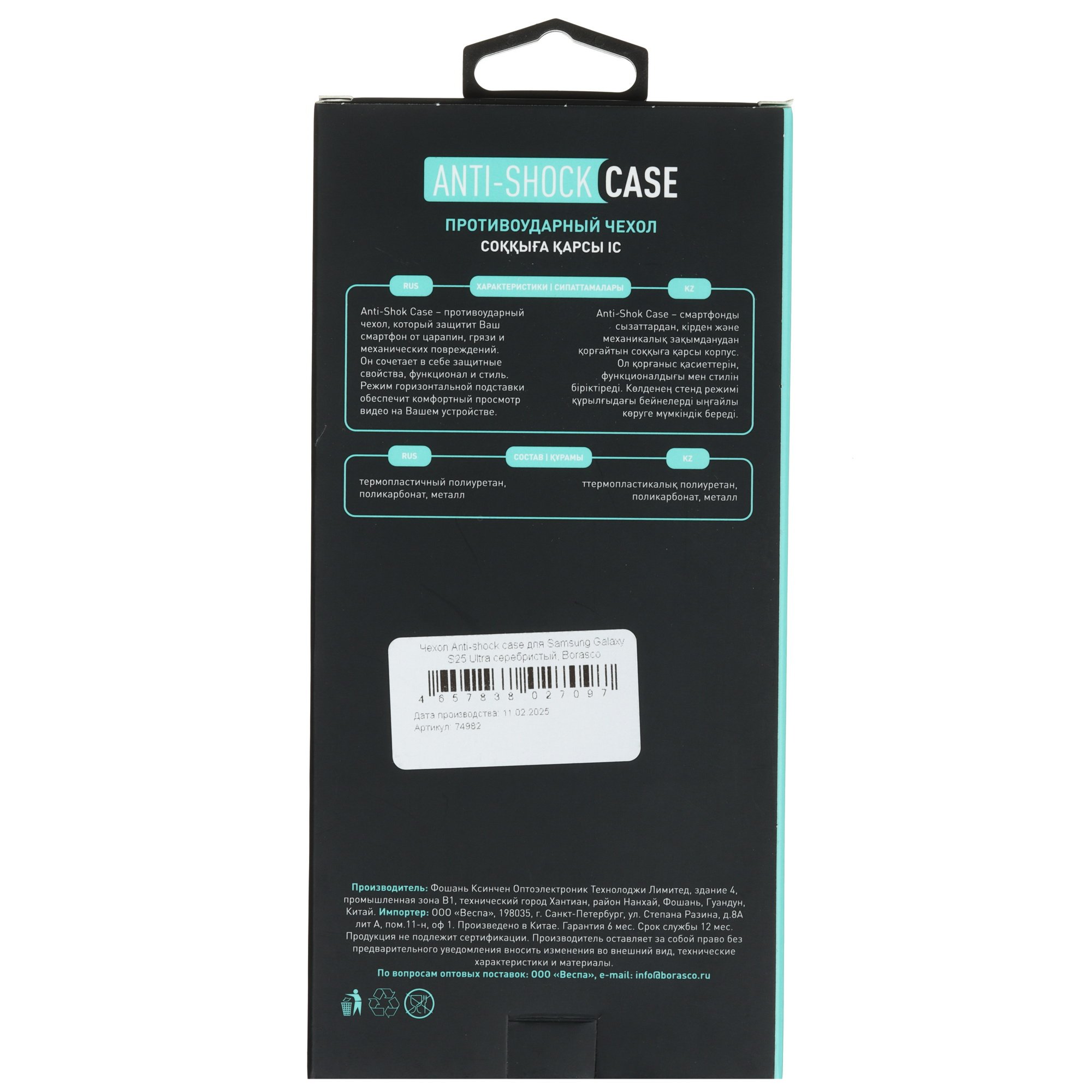 Накладка BoraSCO Anti-Shok Case для Samsung Galaxy S25 Ultra с диагональю экрана 6.9 дюйма защищает корпус смартфона от механических повреждений, загрязнений, брызг воды. Аксессуар изготовлен из поликарбоната и термопластичного полиуретана в серебристом цвете. Усиленная конструкция с амортизирующими углами сохраняет целостность устройства при падениях и ударах. В накладке BoraSCO Anti-Shok Case есть необходимые вырезы для свободного доступа к функциональным разъемам, камере и кнопкам. На задней панели предусмотрено выдвижное металлическое кольцо с функцией подставки.