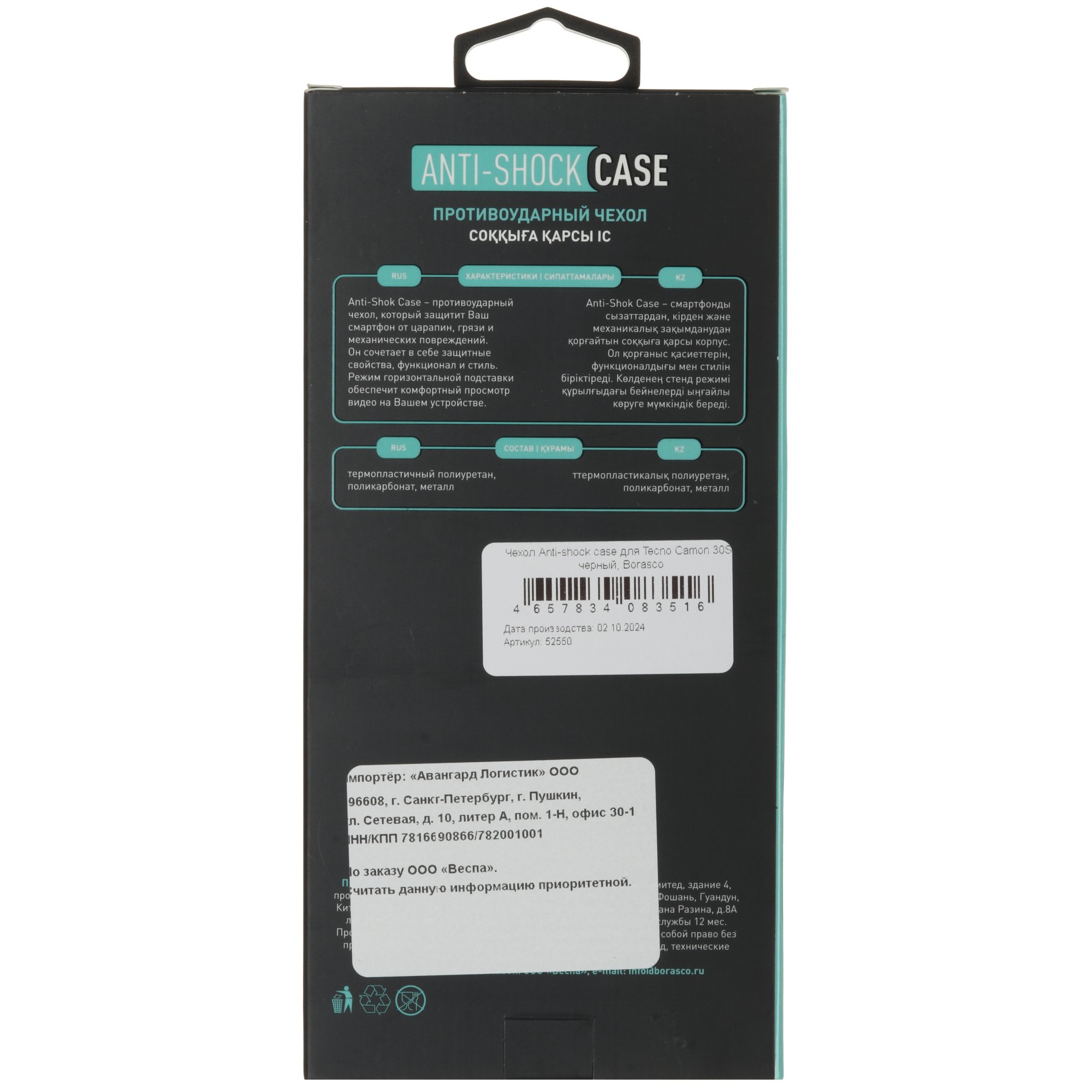 Накладка BoraSCO Anti-Shok Case для Tecno CAMON 30S с диагональю экрана 6.78 дюйма защищает корпус смартфона от механических повреждений, загрязнений, брызг воды. Аксессуар изготовлен из поликарбоната и термопластичного полиуретана в черном цвете. Усиленная конструкция с амортизирующими углами сохраняет целостность устройства при падениях и ударах. В накладке BoraSCO Anti-Shok Case есть необходимые вырезы для свободного доступа к функциональным разъемам, камере и кнопкам. На задней панели предусмотрено выдвижное металлическое кольцо с функцией подставки.