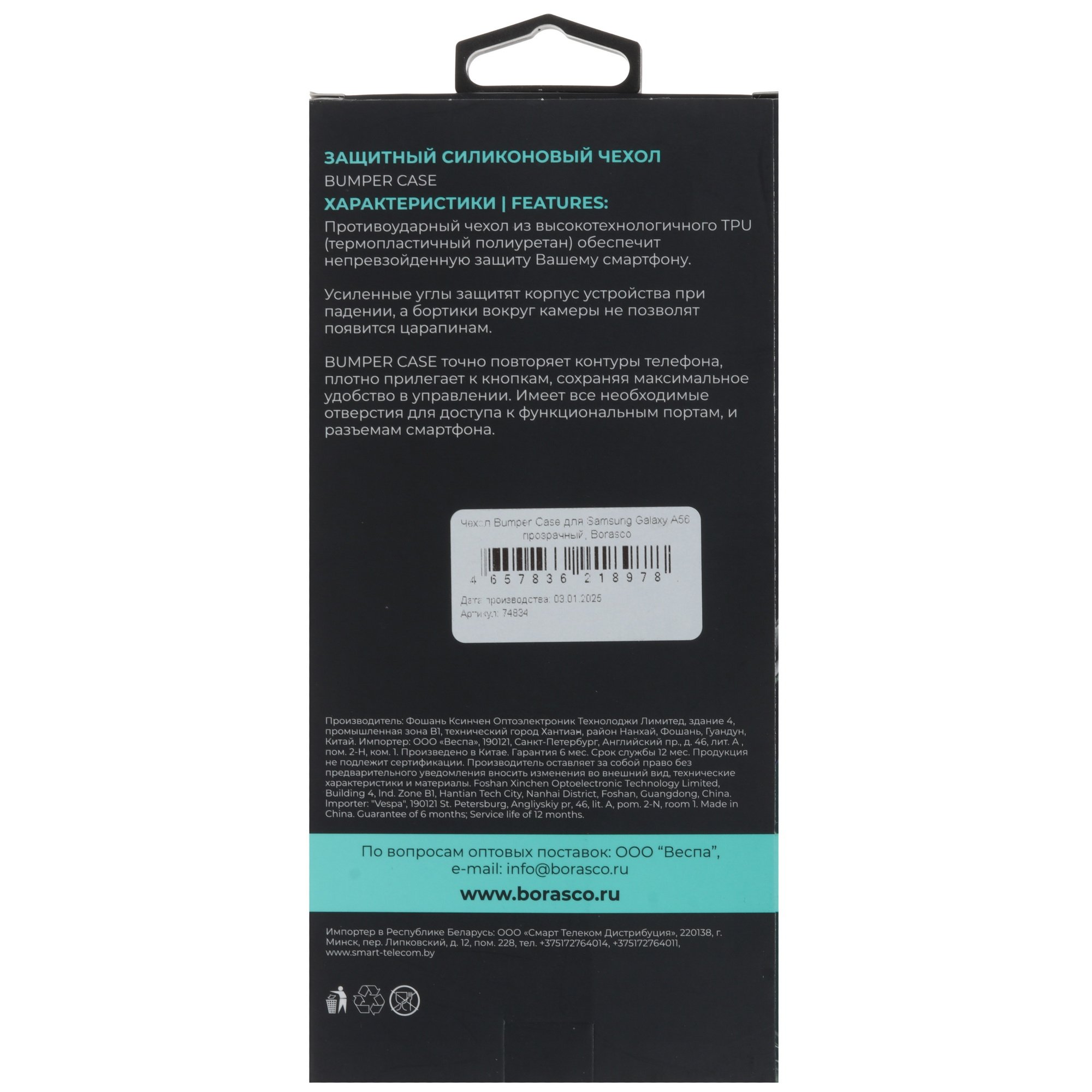 Накладка BoraSCO Bumper Case для Samsung Galaxy A56 сделана из силикона ТПУ. Материал прочный, устойчив на разрыв, смягчает удар в случае падения.