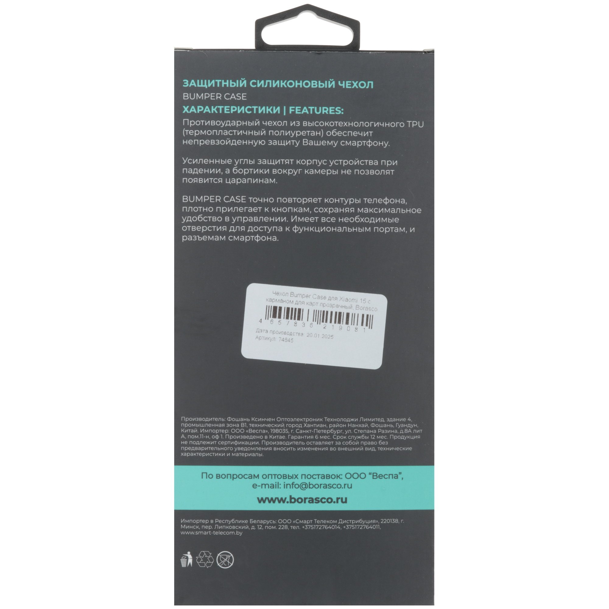 Накладка BoraSCO Bumper Case для Xiaomi 15 сделана из силикона ТПУ. Материал прочный, устойчив на разрыв, смягчает удар в случае падения. В кармане на задней панели можно хранить банковскую карту. Так она будет всегда под рукой.