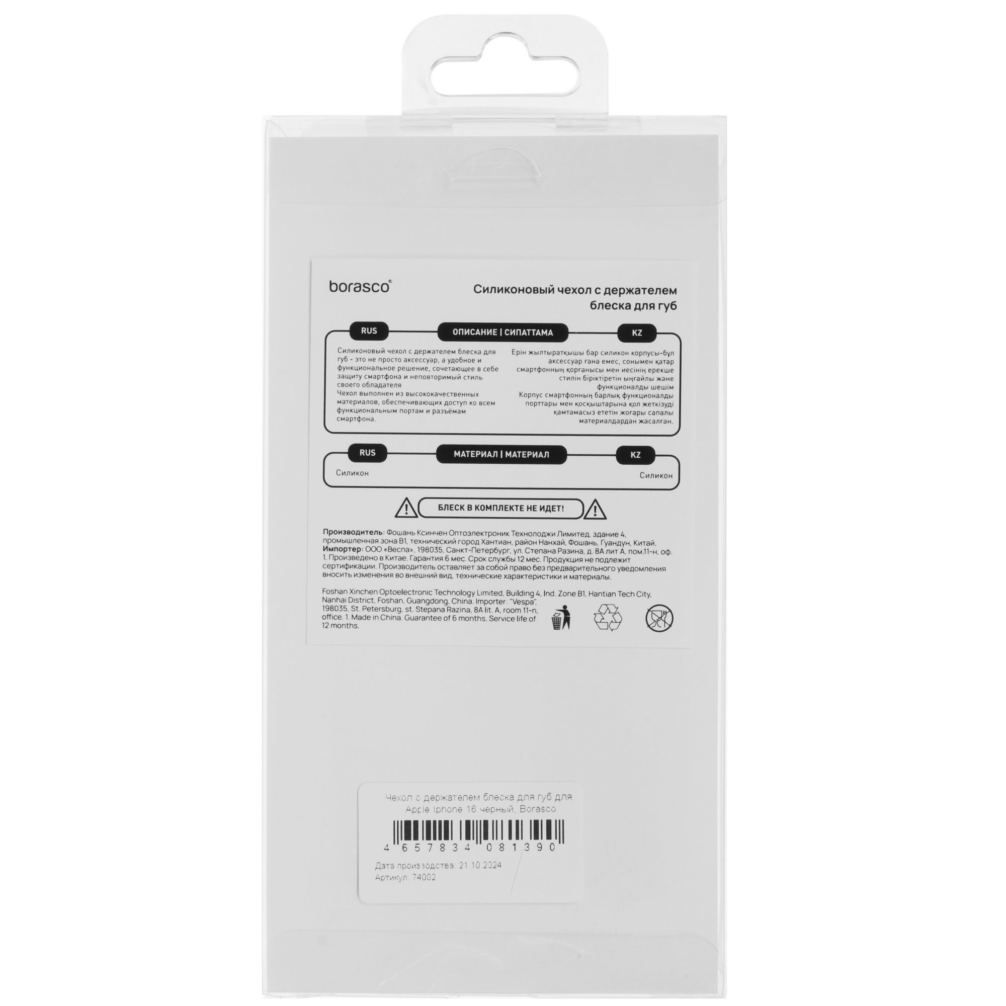 Благодаря амортизационным свойствам материала сохраняется целостность корпуса при ударах и падениях. Мягкая поверхность приятна на ощупь и просто очищается от загрязнений. В конструкции накладки BoraSCO предусмотрен держатель блеска для губ на тыловой стороне.