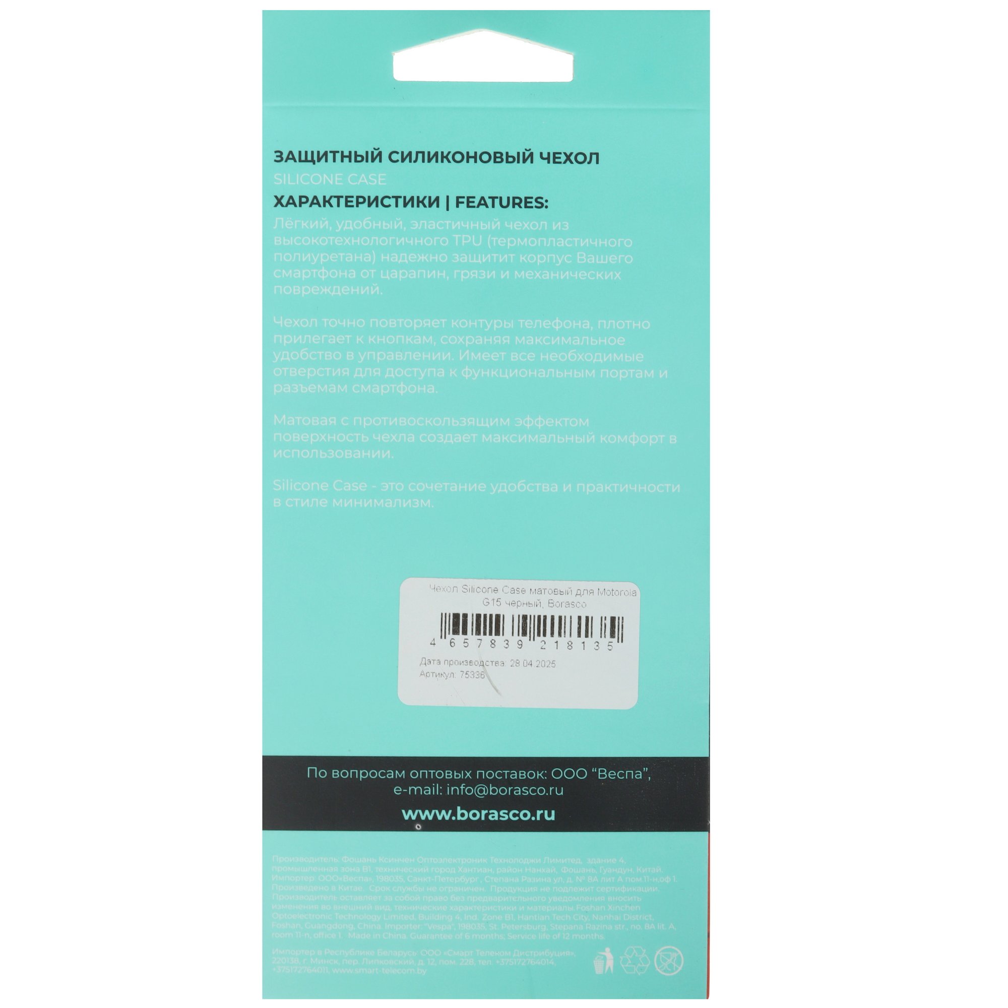 Накладка BoraSCO для Motorola Moto G15 черного цвета совместима с моделью Motorola Moto G15 и выполняет защитные функции. Чехол закрывает заднюю крышку и боковые грани телефона, предотвращает появление на корпусе царапин, потертостей, сколов. При этом в аксессуаре есть отверстия для камеры, зарядного кабеля и проводных наушников.