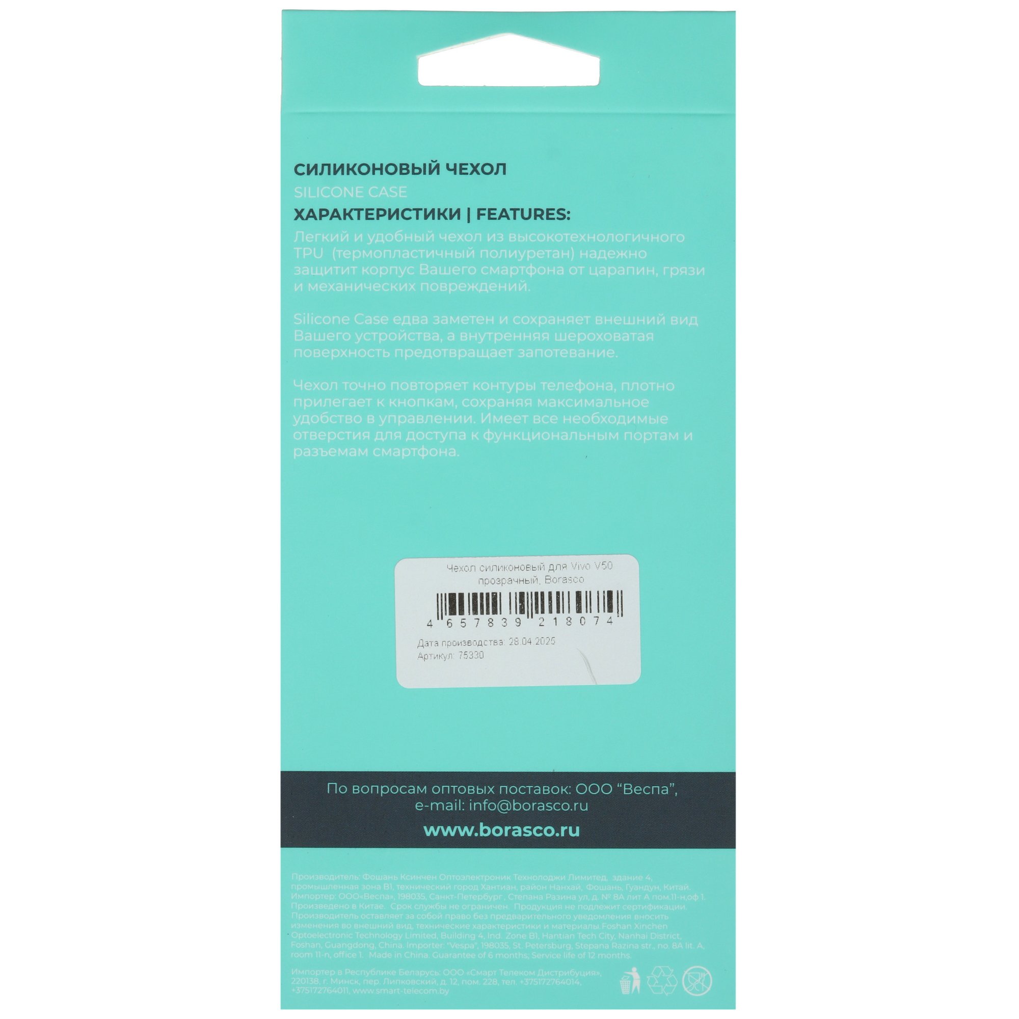 Накладка BoraSCO для Vivo V50 прозрачная предназначена для защиты смартфона Vivo V50 от капель воды, царапин, потертостей. Чехол закрывает всю заднюю часть корпуса и боковые грани. В нем есть все необходимые вырезы под камеру и кабели.