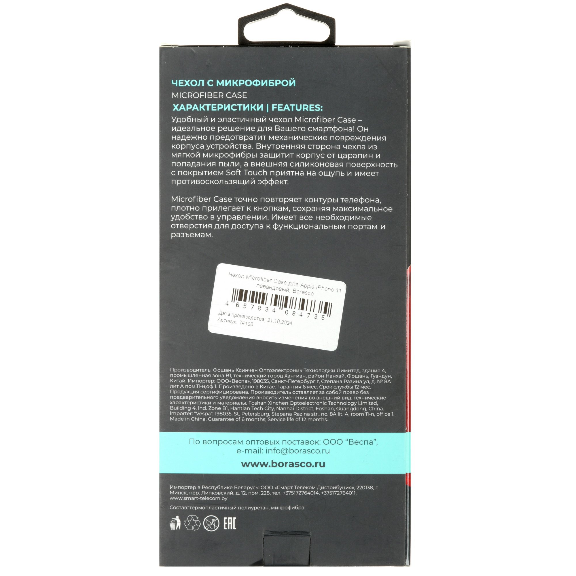 BoraSCO для Apple iPhone 11 оснащена набором отверстий для свободного доступа к разъемам и основной камере. Силиконовая накладка смягчает удары и уменьшает риск появления сколов и других повреждений на корпусе. Вы можете легко снять аксессуар для очистки от брызг и грязи, надеть обратно на устройство без риска поцарапать поверхность и растянуть саму накладку.