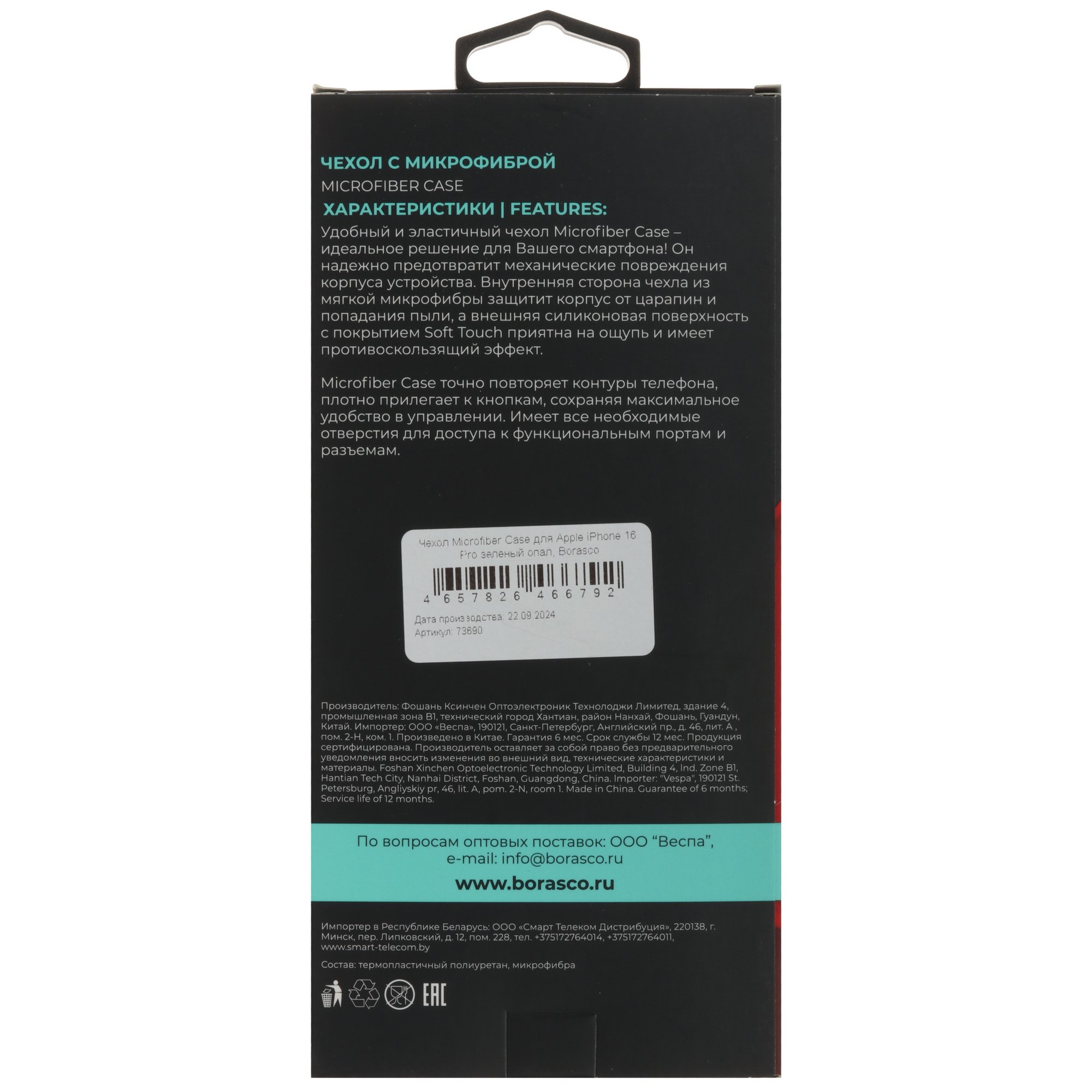 Внутри BoraSCO находится подкладка из микрофибры. Она защищает от потертостей и предотвращает контакт частиц пыли с крышкой устройства. На задней панели аксессуара выполнены отверстия для блока камеры, а на боковых гранях ‒ для разъемов. Наряду с элементами кнопок это позволяет комфортно пользоваться функциями смартфона.