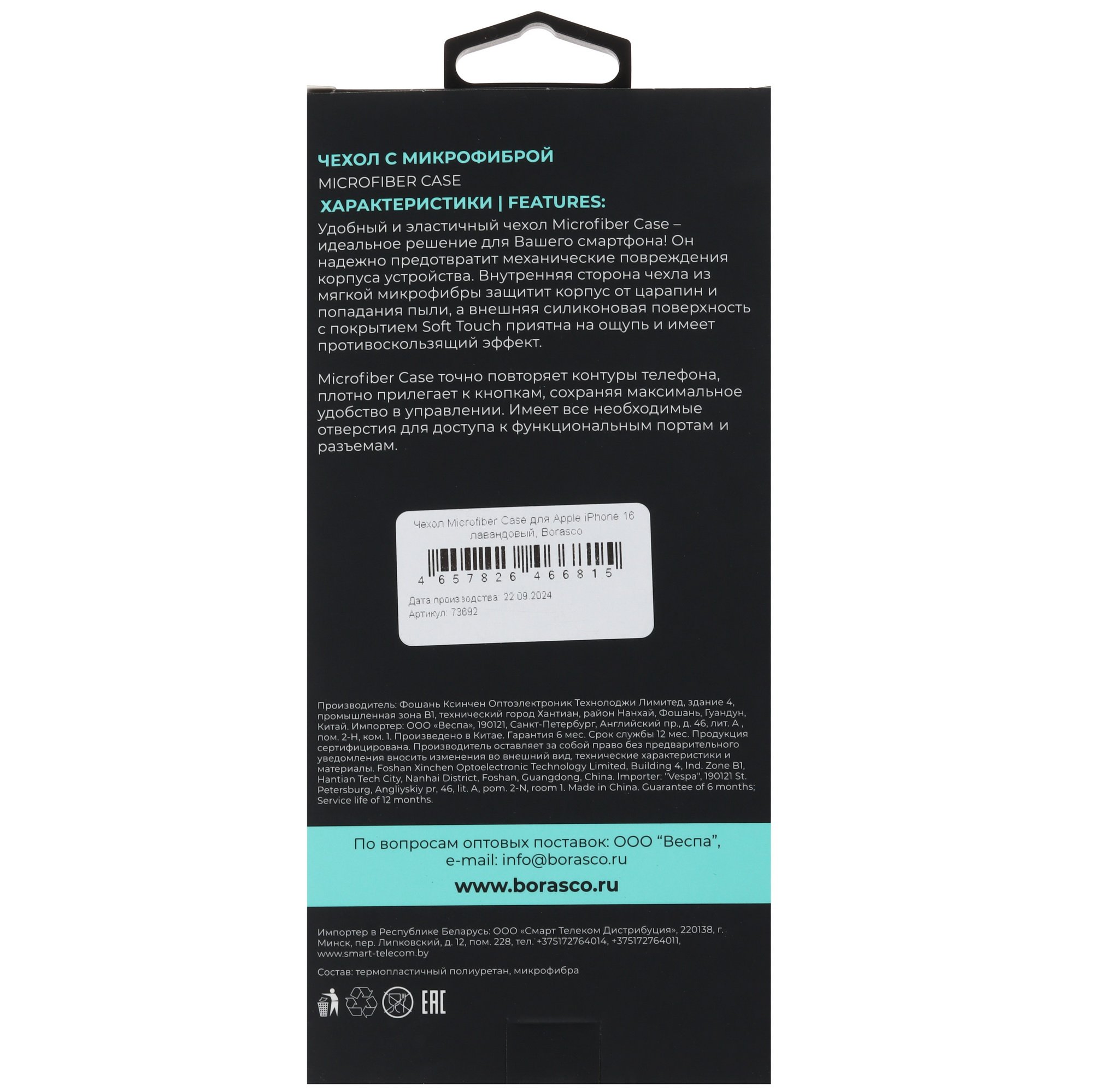 Внутри BoraSCO находится подкладка из микрофибры. Она защищает от потертостей и предотвращает контакт частиц пыли с крышкой устройства. На задней панели аксессуара выполнены отверстия для блока камеры, а на боковых гранях ‒ для разъемов. Наряду с элементами кнопок это позволяет комфортно пользоваться функциями смартфона.