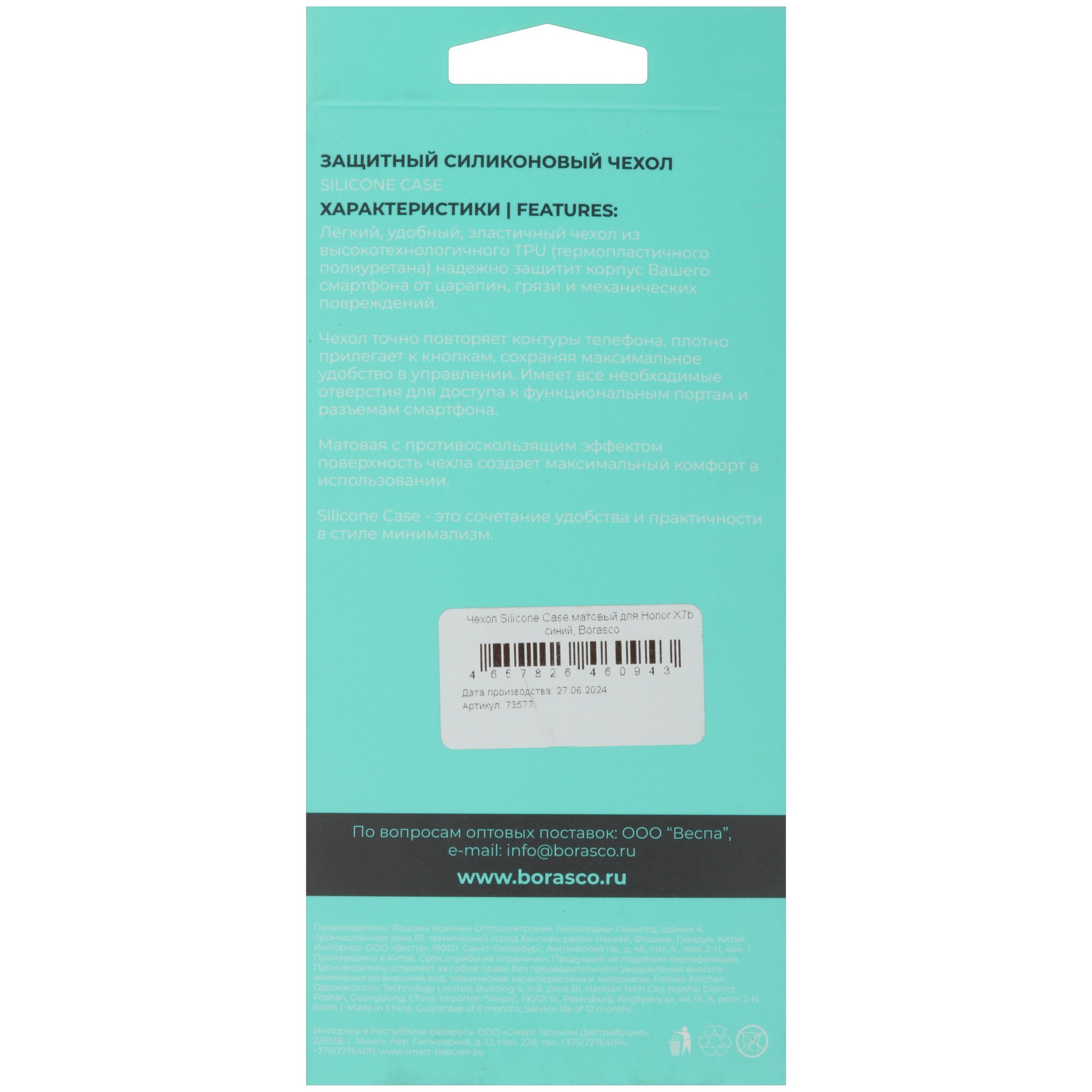 Накладка BoraSCO для HONOR X7b/ 90 Smart выполнена из синего силикона ТПУ и позволяет сохранить дизайн устройства. Защитный чехол защищает от царапин, потертостей и других повреждений. Материал не скользит в руках и не оставляет следов на поверхности. BoraSCO для HONOR X7b/ 90 Smart плотно прилегает к корпусу телефона, не создает лишнего объема и не мешает использовать все функции устройства.
