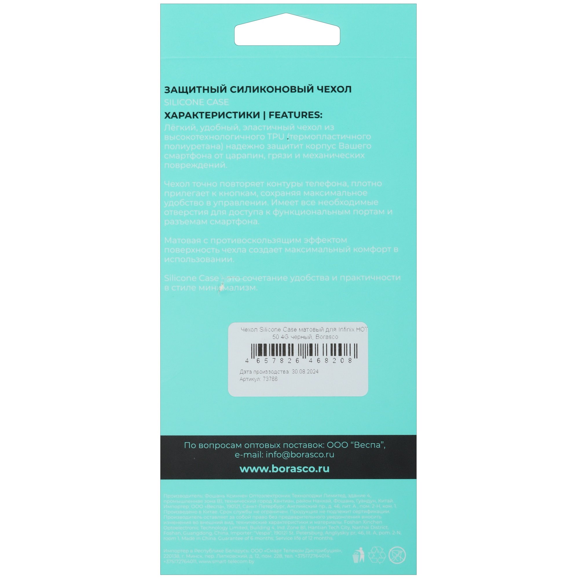 Накладка BoraSCO для Infinix HOT 50 черного цвета без рисунков предназначена для защиты смартфона от ударов, царапин и потертостей предотвращает попадание капель воды на корпус устройства. Чехол помогает оберегать телефон от преждевременного износа, продлевает срок его службы.