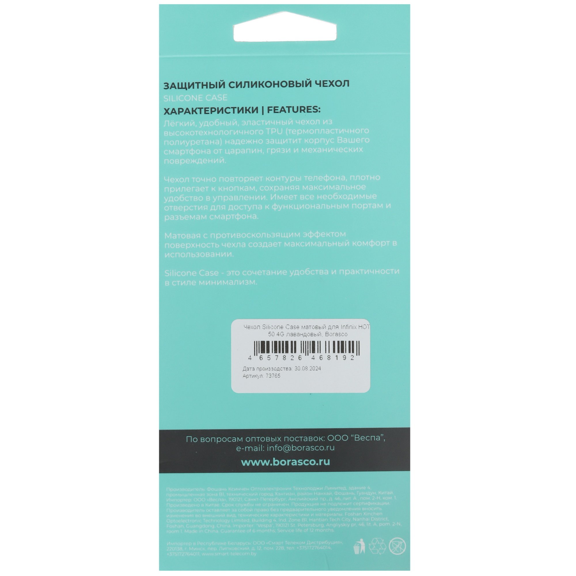Накладка BoraSCO 73765 подходит для эксплуатации со смартфоном Infinix HOT 50. Аксессуар выполнен из фиолетового термопластичного полиуретана, который отличает устойчивость к износу и легкость при удалении загрязнений.