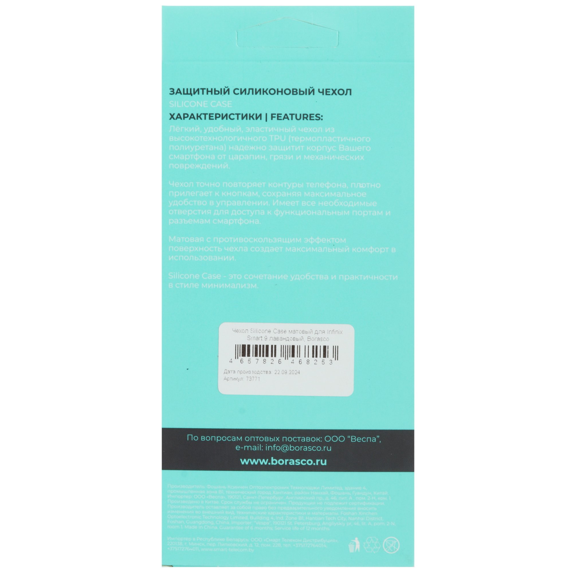 Накладка BoraSCO 73771 плотно прилегает к корпусу устройства, предупреждая появление трещин и сколов. Конфигурацией модели предусмотрены отверстия для камеры, а также подключения зарядного устройства и наушников. Гибкая конструкция позволяет быстро зафиксировать и снять аксессуар со смартфона.