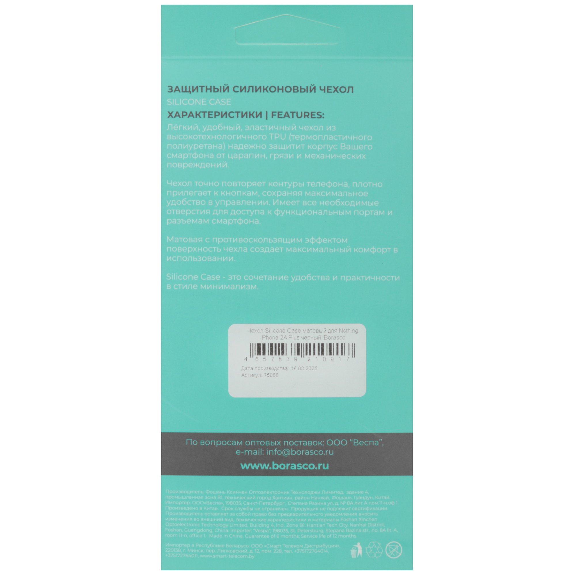 Накладка BoraSCO Silicone Case для Nothing Phone 2a Plus сделана из силикона ТПУ. Этот материал пластичный и обладает амортизацией. Он частично гасит силу удара при падении смартфона на твердую поверхность и предотвращает его поломку. Благодаря легкому весу чехол не утяжеляет телефон.
