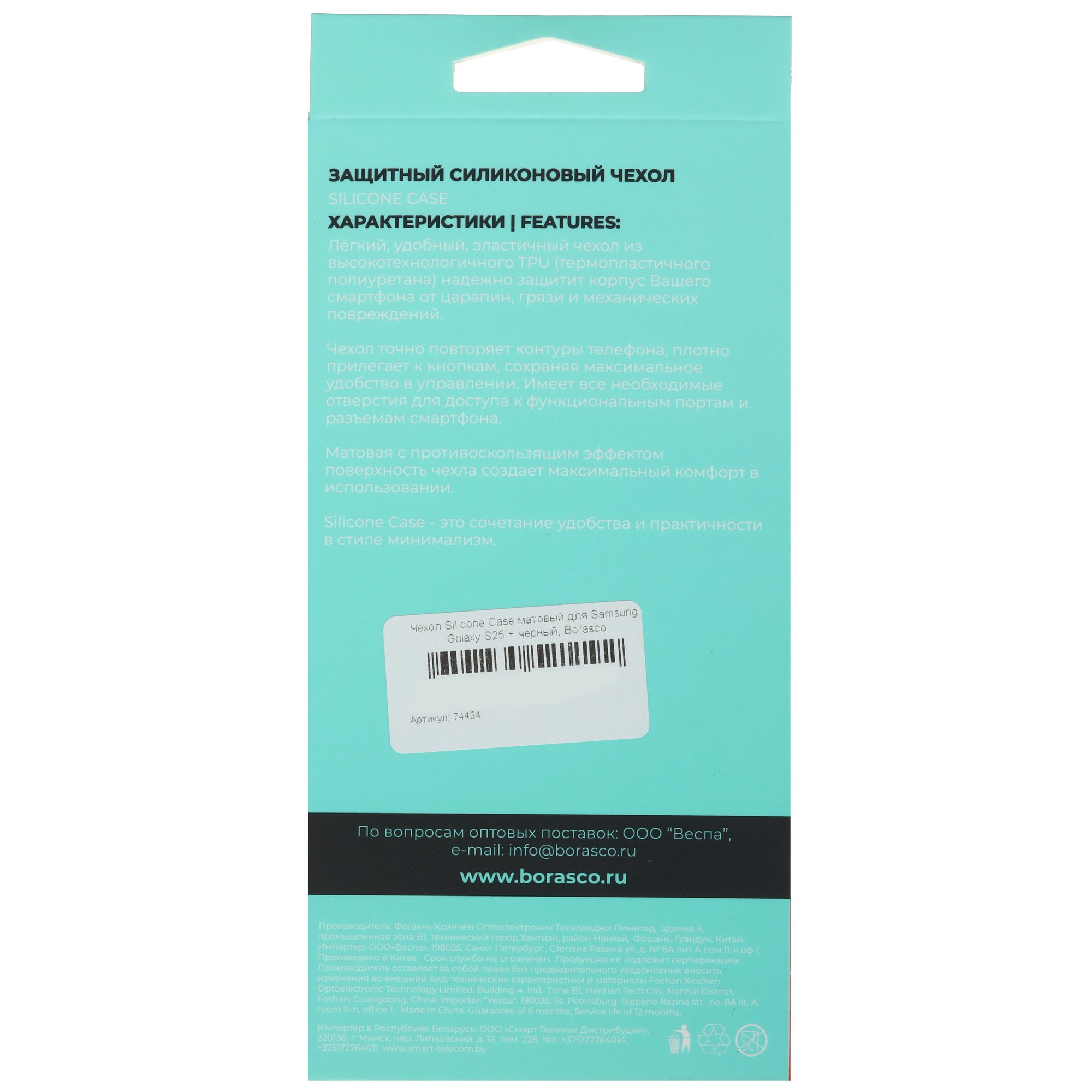 BoraSCO для Samsung Galaxy S25+ выполнена из черного силикона. Накладка смягчает удары для защиты устройства от появления царапин, сколов и других повреждений. Аксессуар оберегает корпус смартфона от брызг и пыли, меньше скользит в руках в отличие от пластиковой или металлической поверхности.