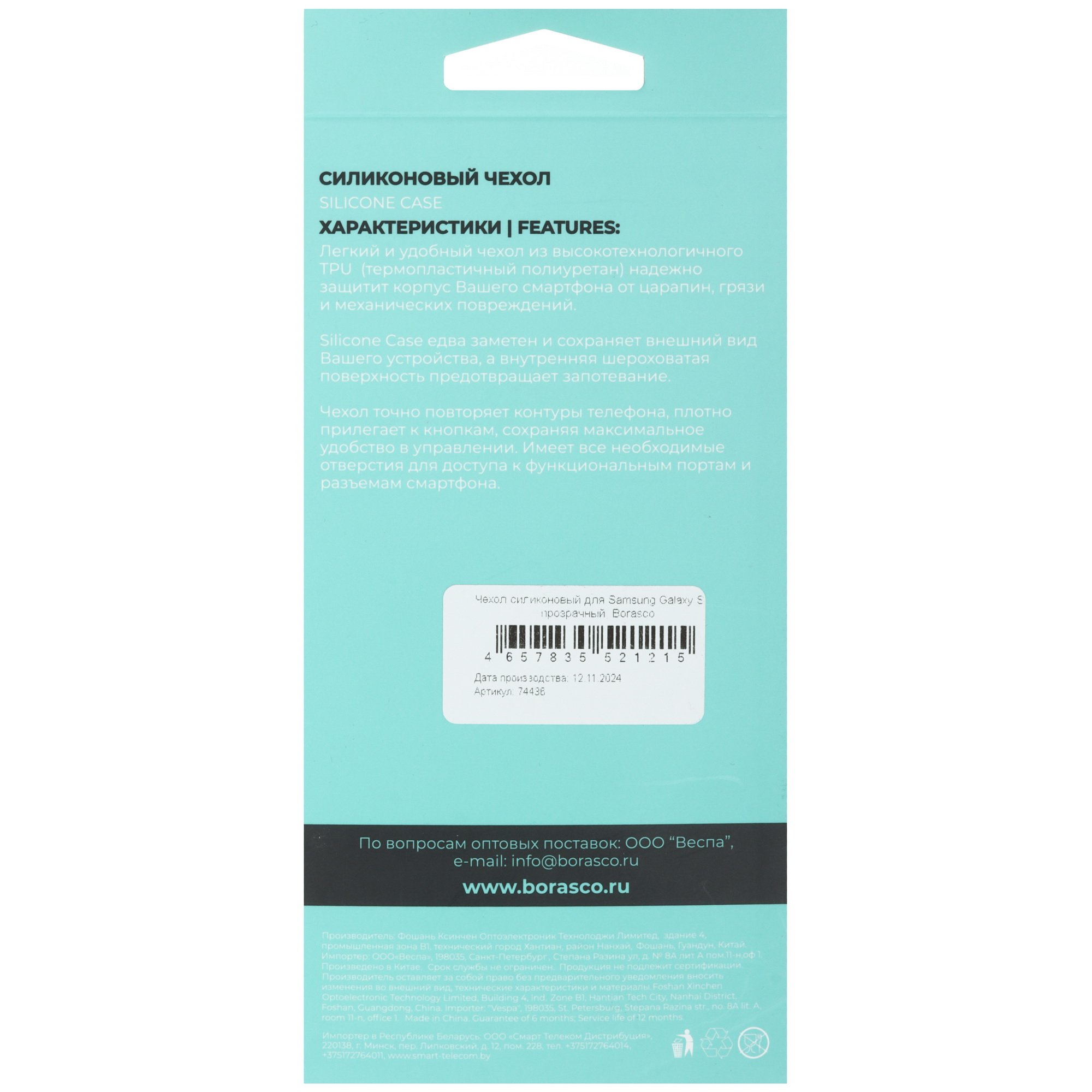 BoraSCO для Samsung Galaxy S25 выполнена из прозрачного силикона. Накладка смягчает удары для защиты устройства от появления царапин, сколов и других повреждений. Аксессуар оберегает корпус смартфона от брызг и пыли, меньше скользит в руках в отличие от пластиковой или металлической поверхности.