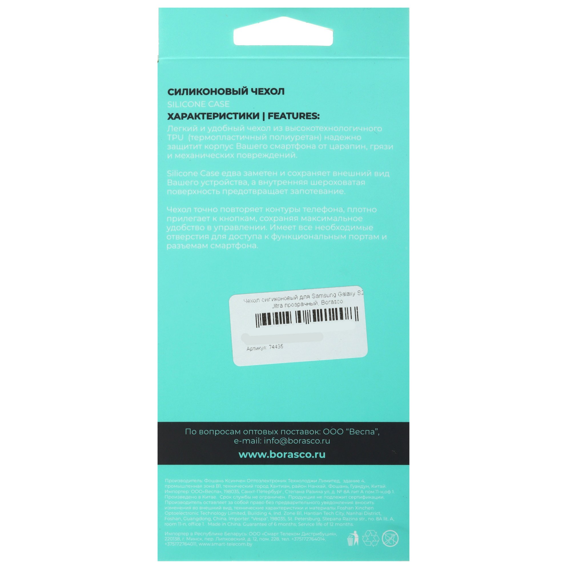 Накладка BoraSCO для Samsung Galaxy S25 Ultra плотно прилегает к корпусу и точно повторяет контуры устройства. Эластичный материал сохраняет исходную форму при частом снятии чехла для очистки от загрязнений. Набор отверстий оставляет свободный доступ к основной камере и разъемам.