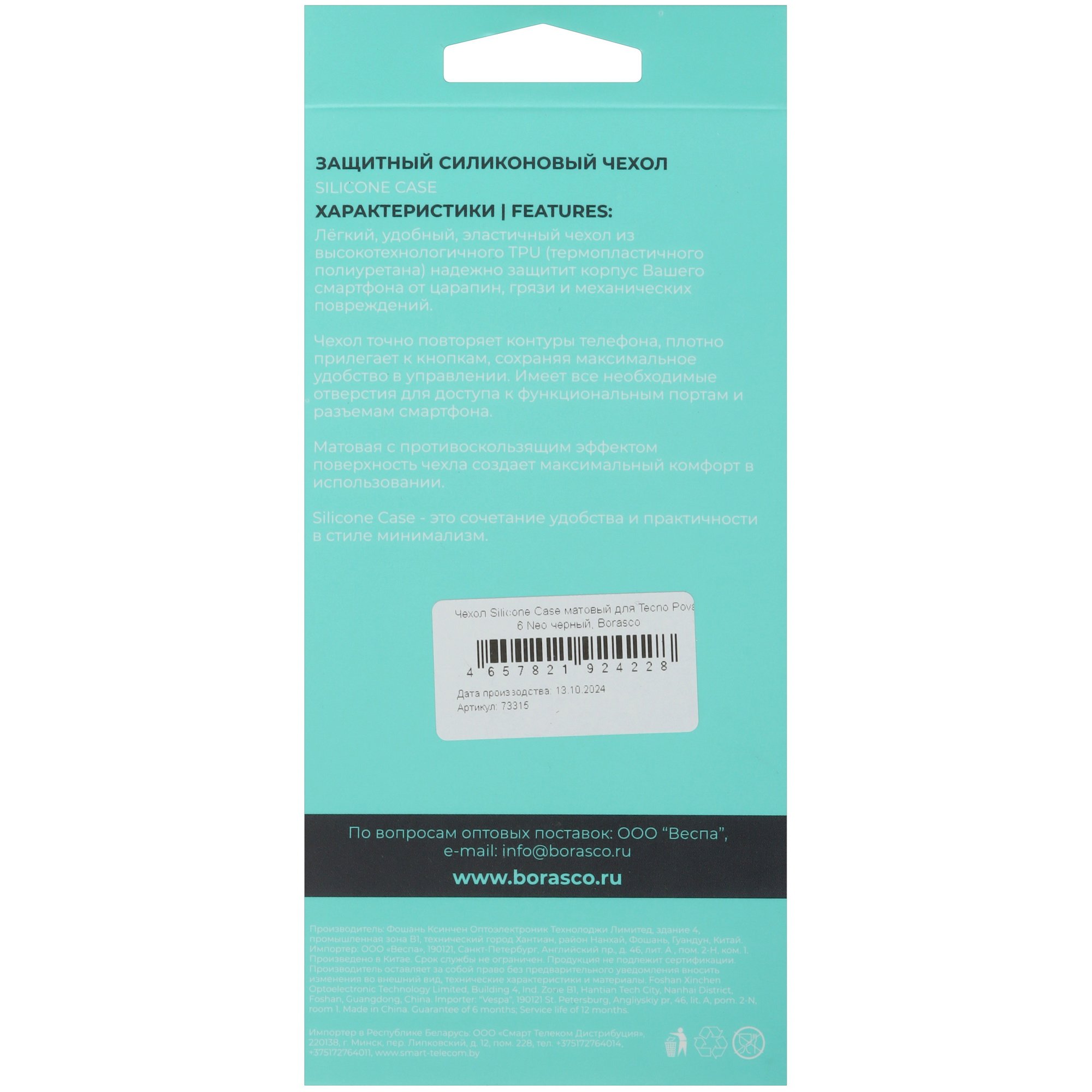 Накладка BoraSCO 73315 подходит для эксплуатации со смартфоном Tecno POVA 6 Neo. Аксессуар выполнен из черного термопластичного полиуретана, который отличает устойчивость к износу и легкость при удалении загрязнений.