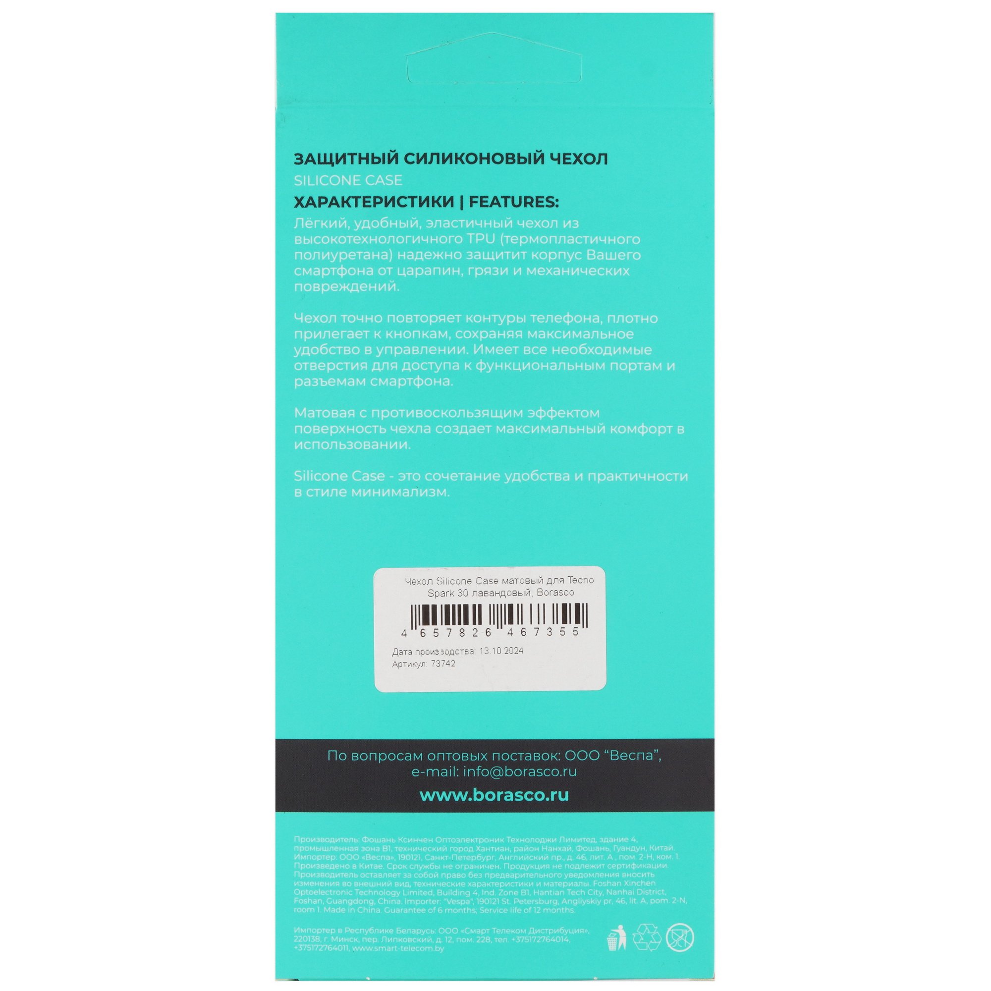 Накладка BoraSCO 73742 подходит для эксплуатации со смартфоном Tecno SPARK 30 4G. Аксессуар выполнен из сиреневого термопластичного полиуретана, который отличает устойчивость к износу и легкость при удалении загрязнений.