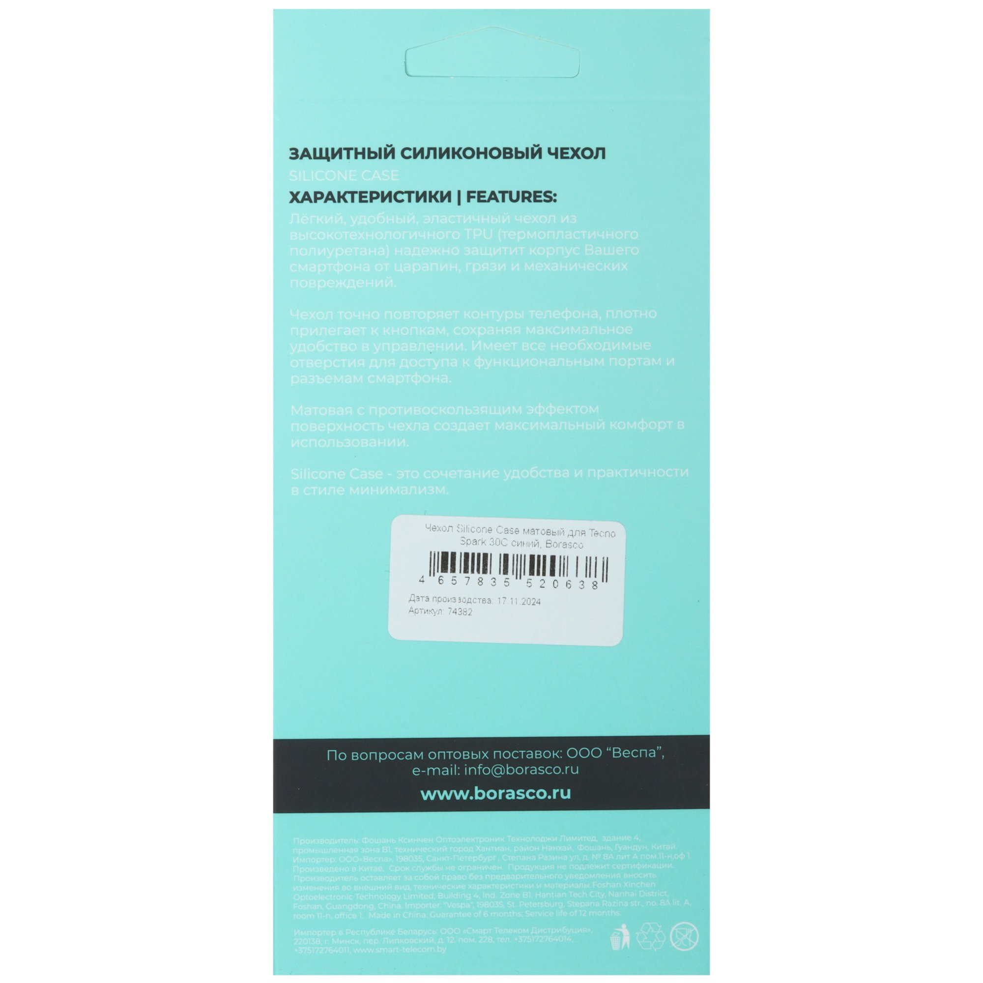 Накладка BoraSCO для Tecno SPARK 30C плотно прилегает к корпусу и точно повторяет контуры устройства. Эластичный материал сохраняет исходную форму при частом снятии чехла для очистки от загрязнений. Набор отверстий оставляет свободный доступ к основной камере и разъемам.