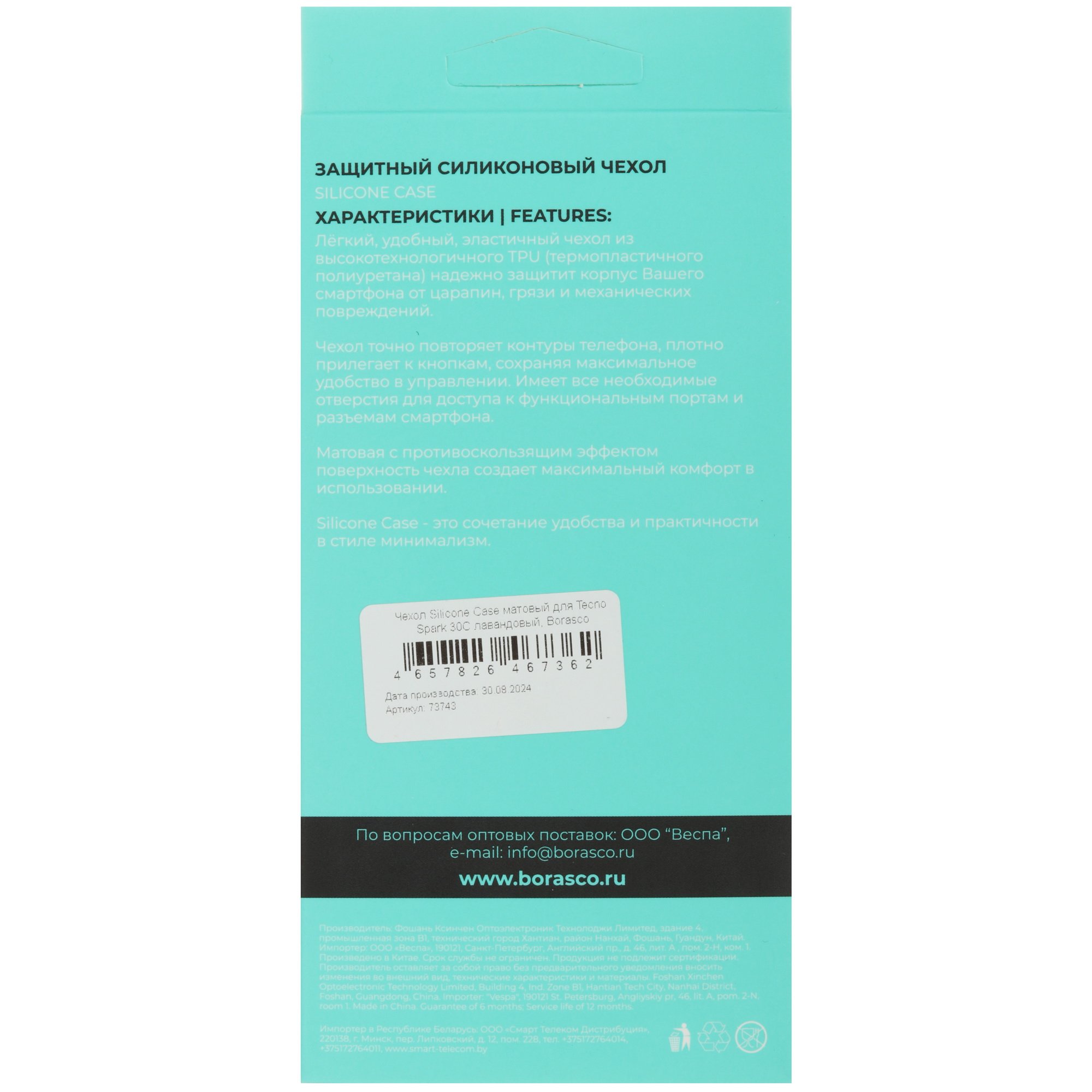 Накладка BoraSCO 73743 подходит для эксплуатации со смартфоном Tecno SPARK 30C. Аксессуар выполнен из сиреневого термопластичного полиуретана, который отличает устойчивость к износу и легкость при удалении загрязнений.