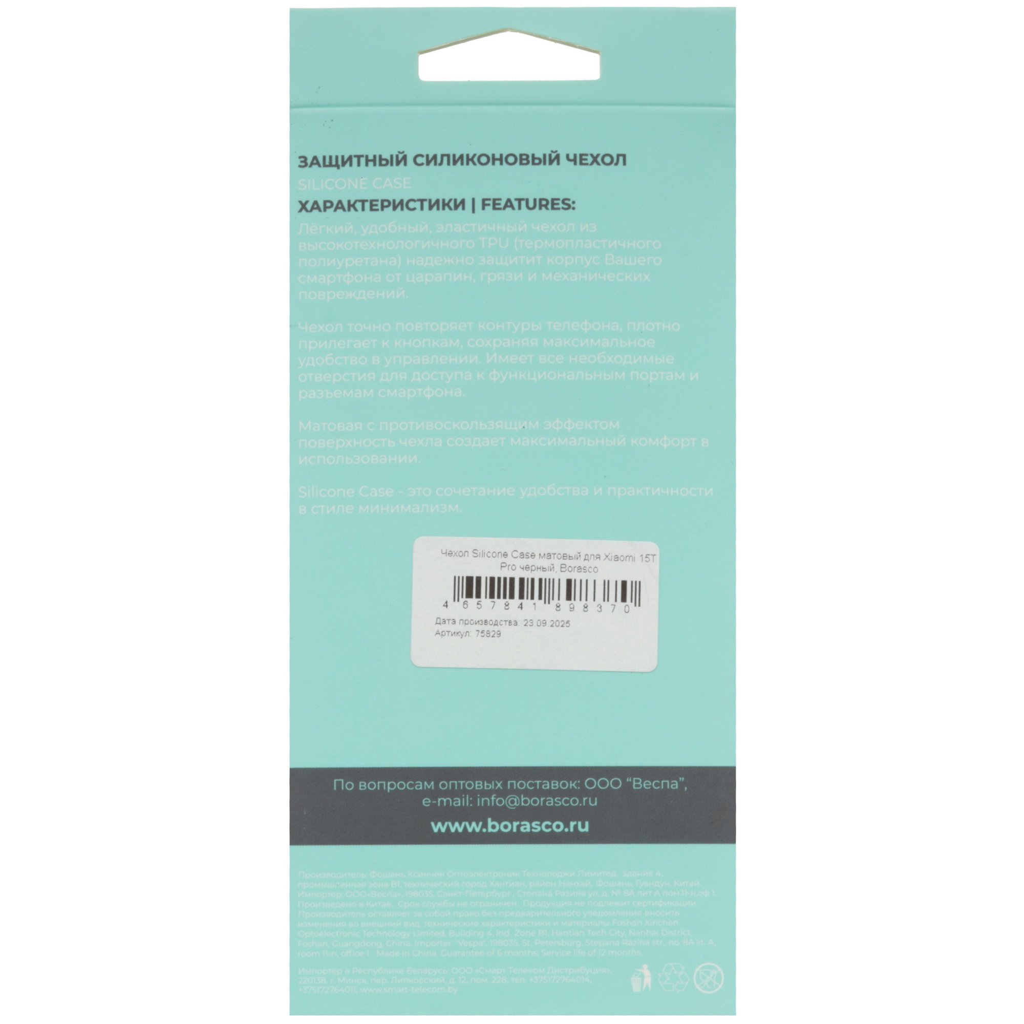Накладка BoraSCO Silicone Case для Xiaomi 15T Pro с диагональю экрана 6.83 дюйма защищает корпус смартфона от царапин, потертостей, загрязнений. Черный чехол изготовлен из гибкого термопластичного полиуретана. Накладка плотно прилегает к корпусу устройства и обеспечивает комфортное удержание. Защитный аксессуар полностью соответствует расположению функциональных разъемов смартфона и оснащен необходимыми вырезами для свободного доступа к ним. Благодаря амортизационным свойствам накладка BoraSCO Silicone Case сохраняет целостность корпуса при несильных падениях и ударах.
