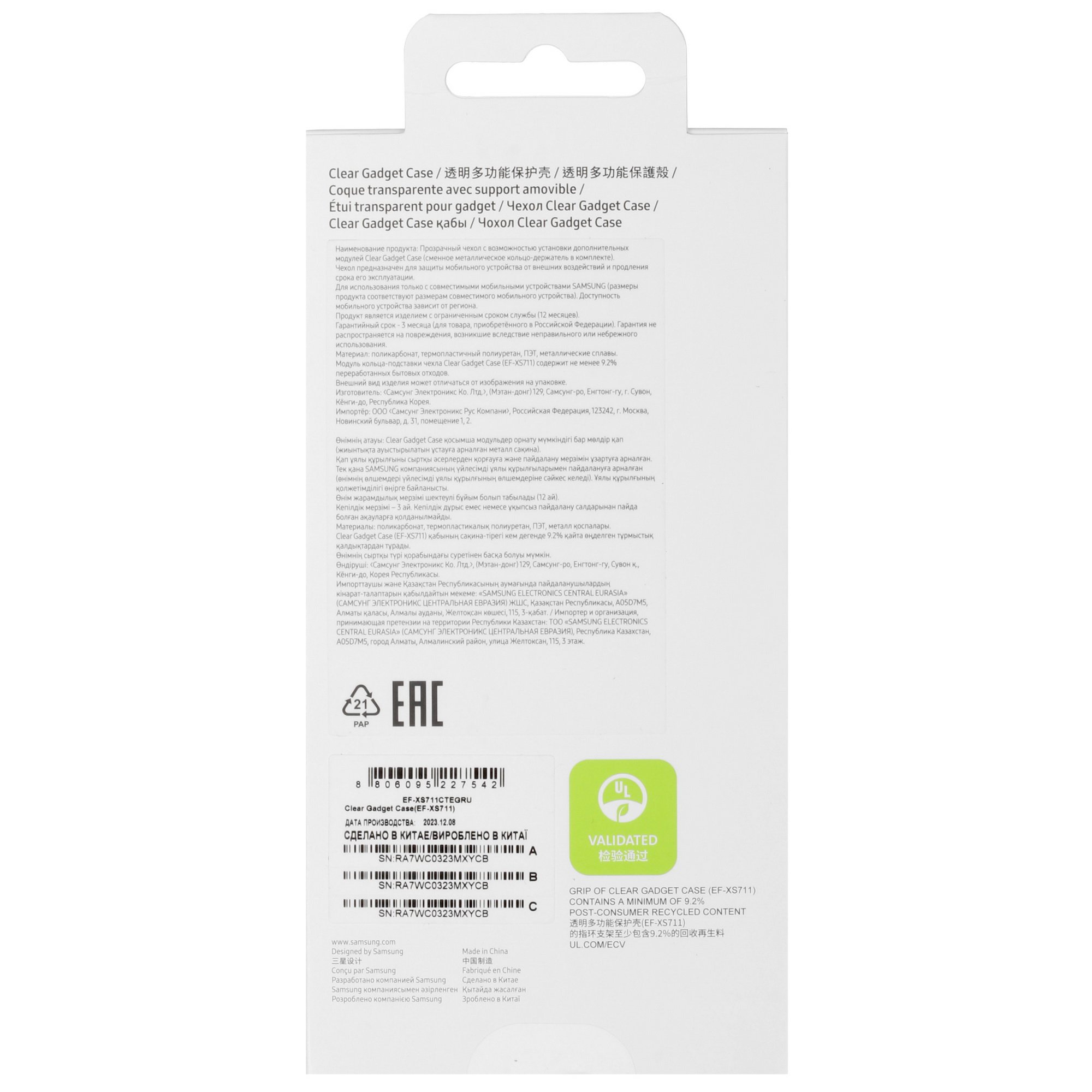 Samsung Clear Gadget Case для Samsung Galaxy S23 FE смягчает удары при случайном падении устройства. Накладка закрывает заднюю часть корпуса вместе с углами и боковыми гранями. Есть отверстия для свободного доступа к камере, разъемам и кнопкам, кольцо-держатель с функцией подставки. Накладка не скользит в руках, не оставляет следов и царапин на устройстве.